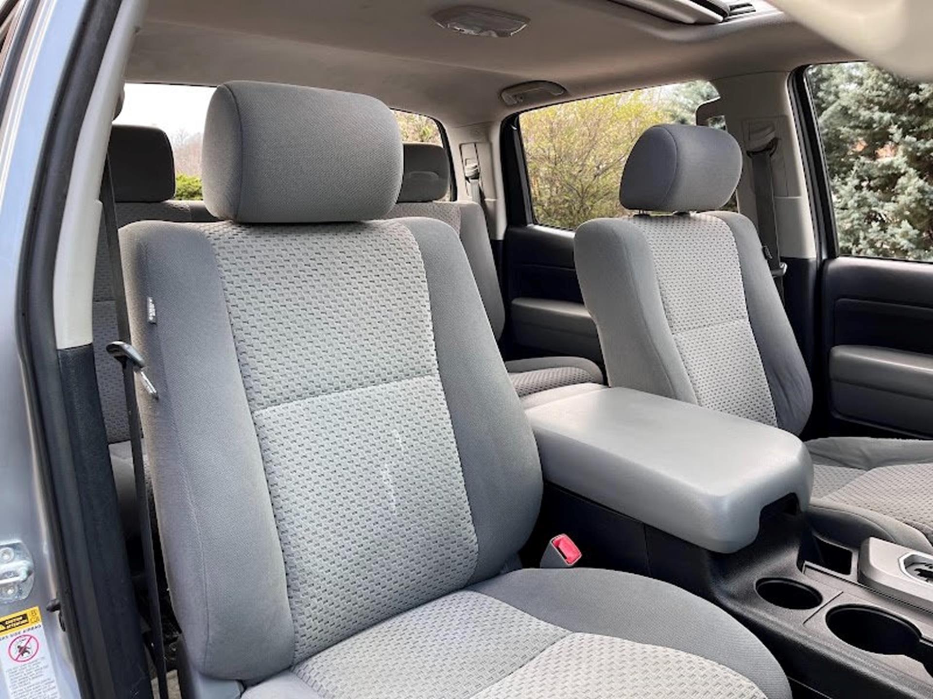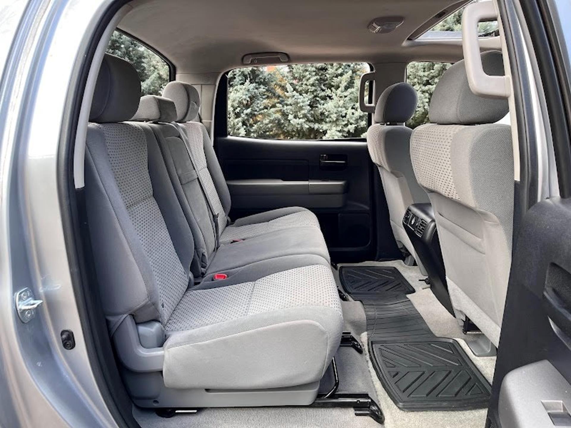 Clean CARFAX. INFORMATION ABOUT THIS VEHICLE AND WHAT FEATURES IT IS EQUIPPED WITH:, Fresh Oil Change, Backup Camera/ Rearview Camera, Cruise Control, Sunroof/ Moonroof, Keyless Access, Aux Input, Bench Seat, Sirius XM Radio/ Satellite Radio, Parking Sensors, Multi-Zone Climate Control, Alloy Wheels, Security System, Brake Assist, i-Force 5.7L V8 DOHC, 4WD, Graphite Cloth. 2011 Toyota Tundra Grade CrewMax 4WD Silver 6-Speed Automatic Electronic i-Force 5.7L V8 DOHC