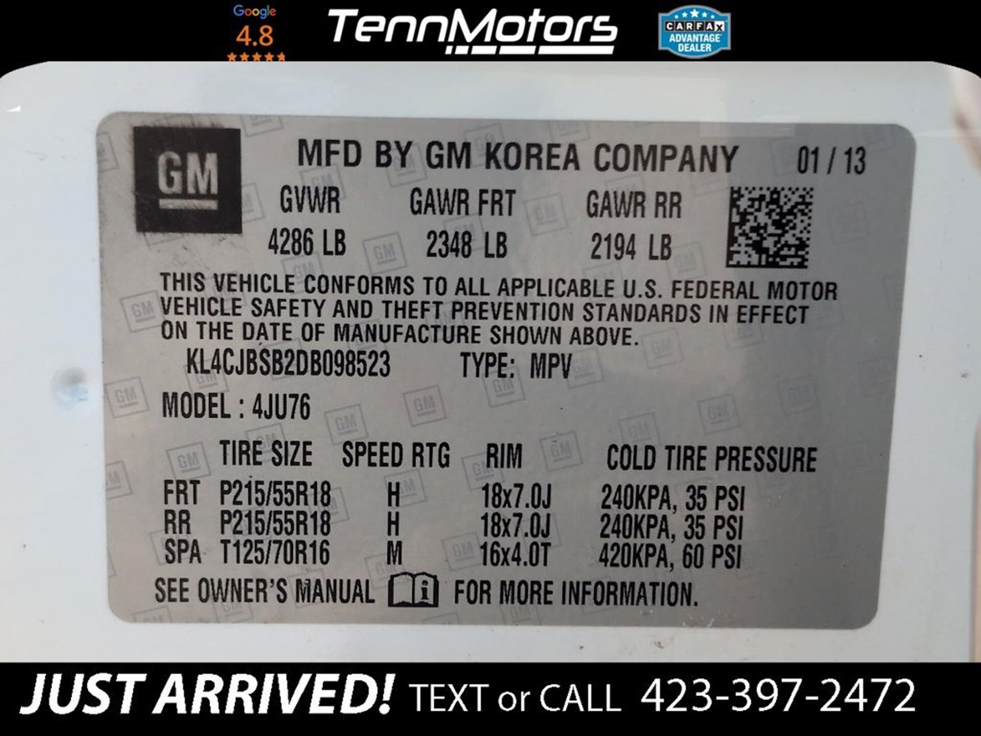 VIN: KL4CJBSB2DB098523