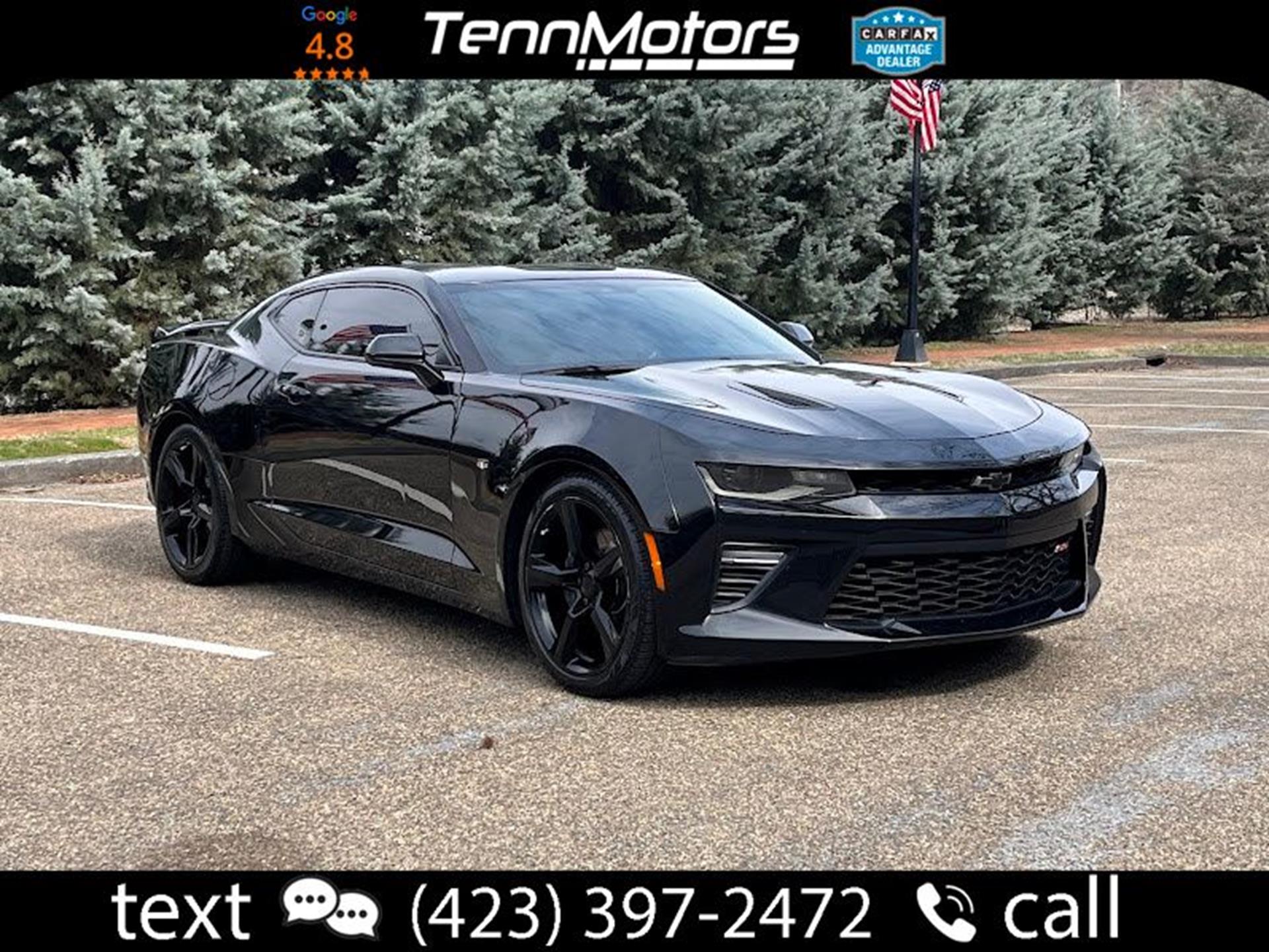 CARFAX One-Owner. INFORMATION ABOUT THIS VEHICLE AND WHAT FEATURES IT IS EQUIPPED WITH:, Fresh Oil Change, Backup Camera/ Rearview Camera, Bluetooth, Cruise Control, Apple Carplay/ Android Auto, Touchscreen Controls, Keyless Access, Push Button Start, Automatic Headlights, Voice Recognition, Smartphone App Integration, Wi-Fi Hotspot, USB Port, Aux Input, Sirius XM Radio/ Satellite Radio, Power Seats, Alloy Wheels, Security System, Steering Wheel Controls, Brake Assist. 2017 Chevrolet Camaro SS 1SS RWD Black 6-Speed Manual 6.2L V8