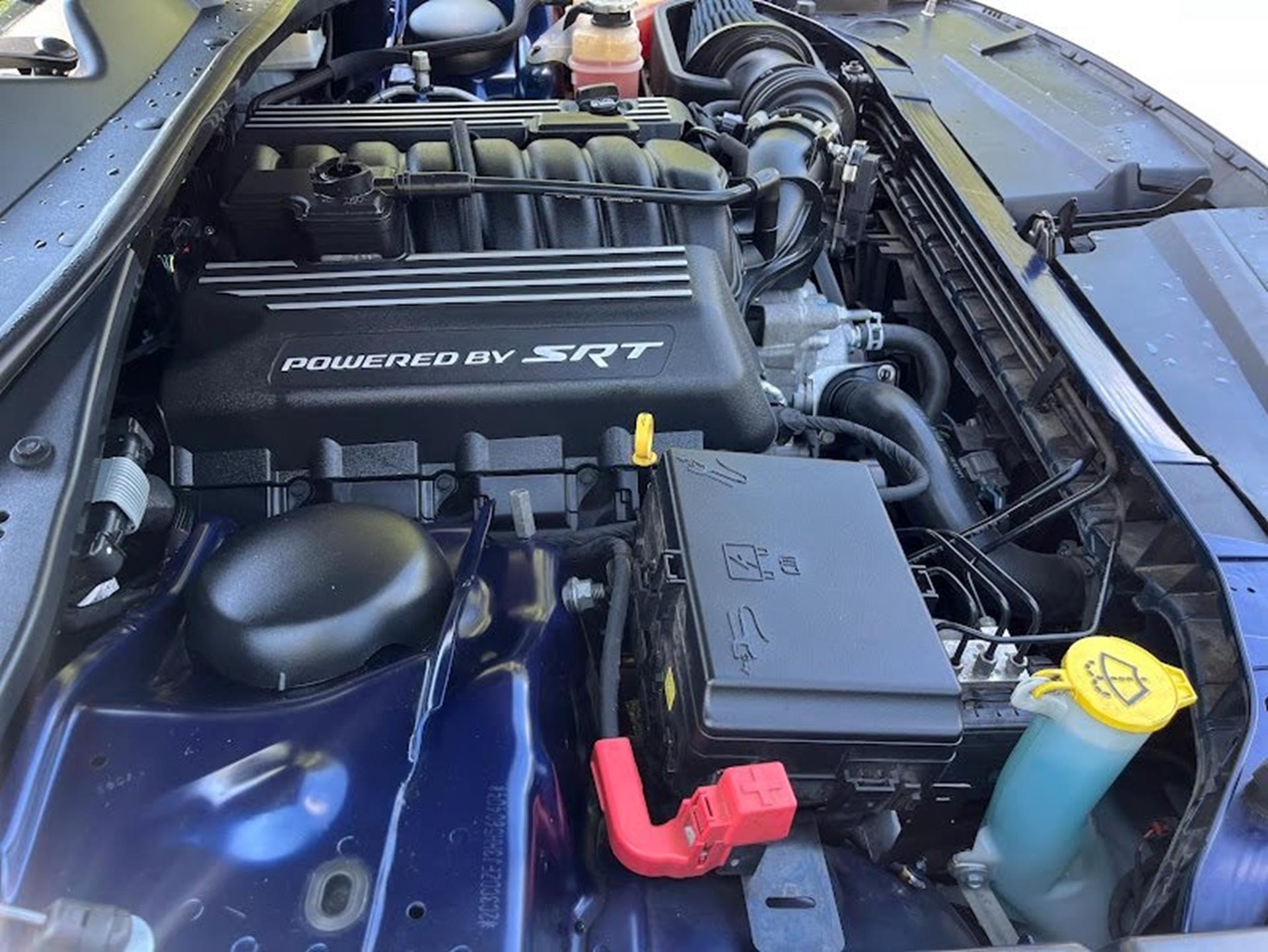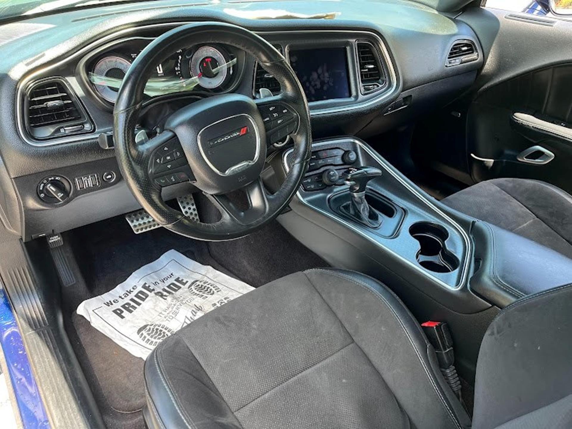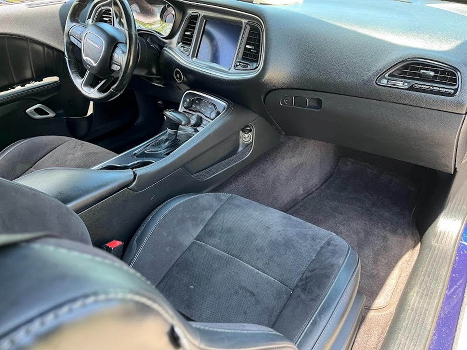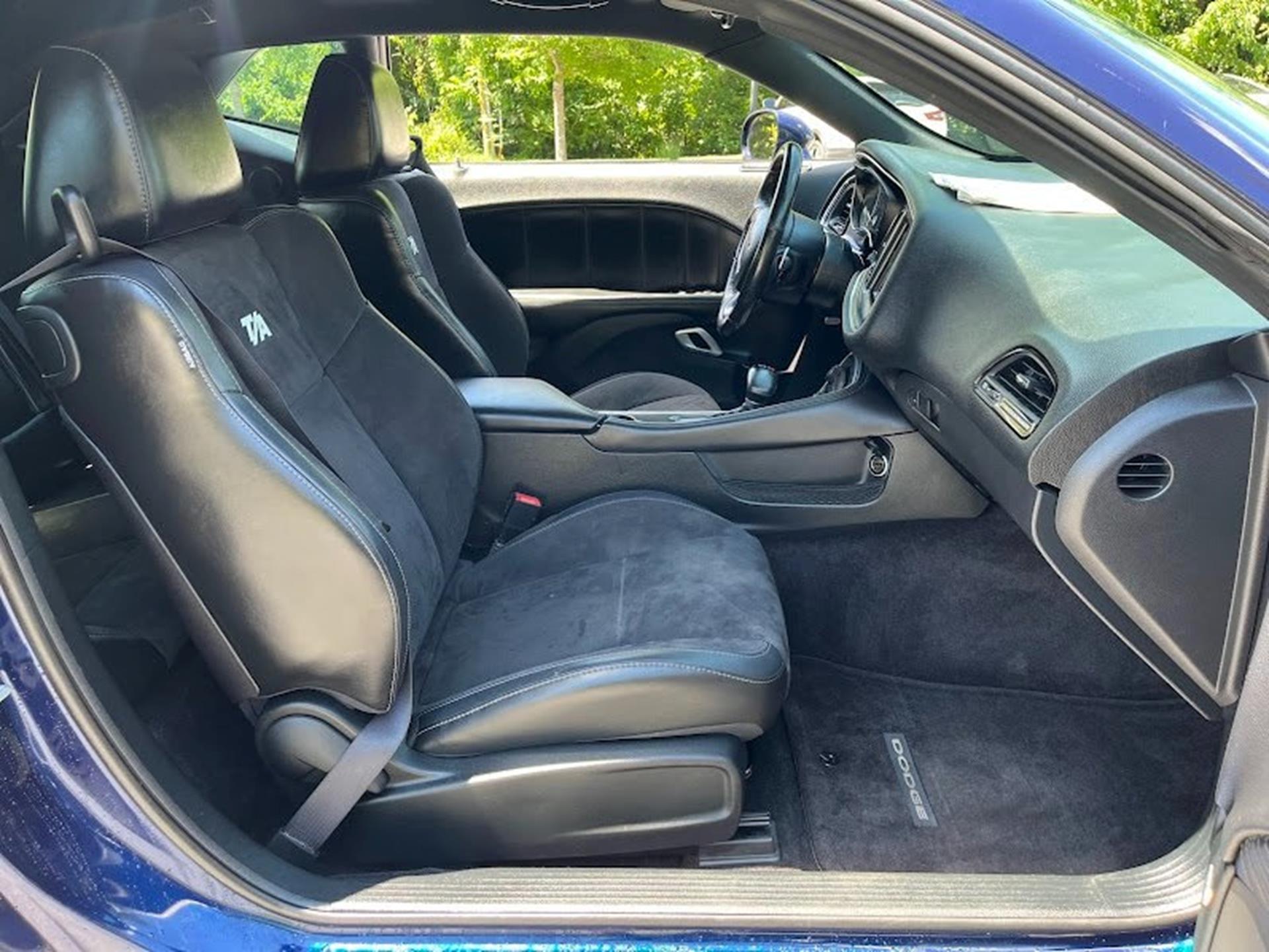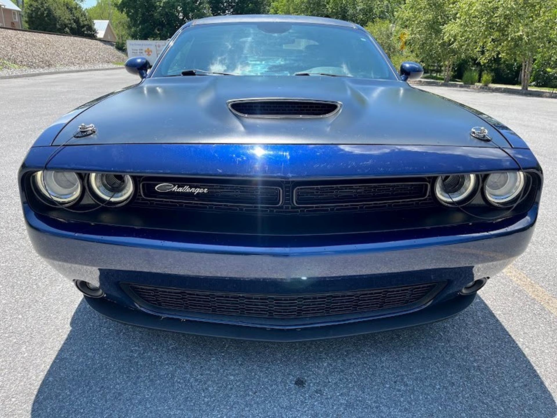 INFORMATION ABOUT THIS VEHICLE AND WHAT FEATURES IT IS EQUIPPED WITH:, ***NAVIGATION***, Fresh Oil Change, Backup Camera/ Rearview Camera, Bluetooth, Cruise Control, Navigation System, Apple Carplay/ Android Auto, Touchscreen Controls, Keyless Access, Push Button Start, Automatic Headlights, Voice Recognition, Smartphone App Integration, Wi-Fi Hotspot, USB Port, Aux Input, Leather Seats, Bench Seat, Sirius XM Radio/ Satellite Radio, Parking Sensors, Power Seats, Multi-Zone Climate Control, Alloy Wheels, Security System, Steering Wheel Controls, Brake Assist. 2017 Dodge Challenger R/T RWD Contusion Blue Pearlcoat 8-Speed Automatic SRT HEMI 6.4L V8 MDS