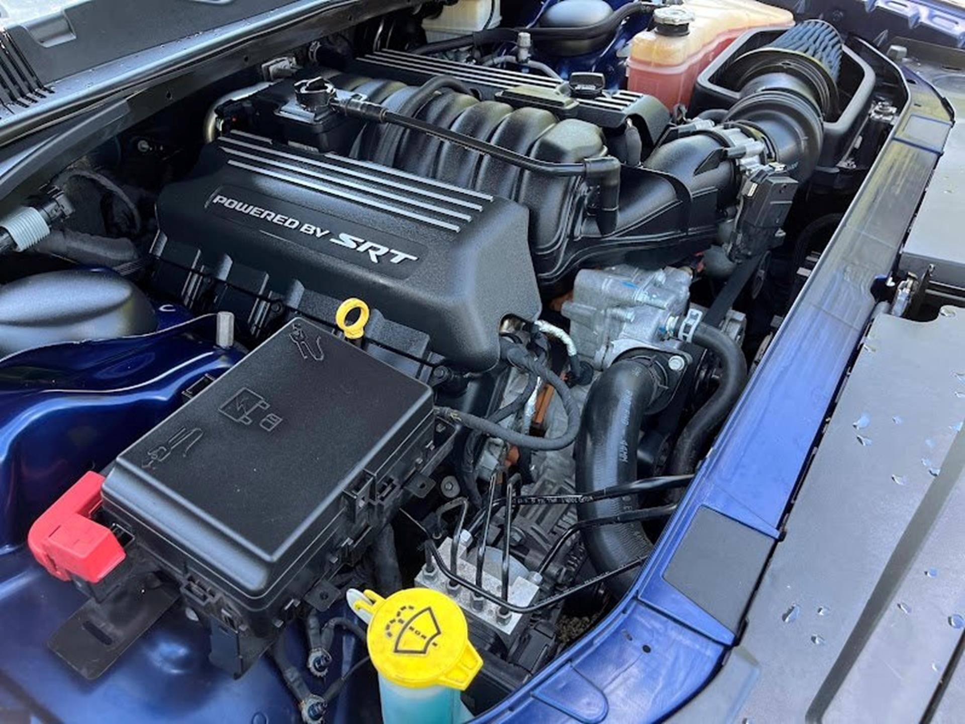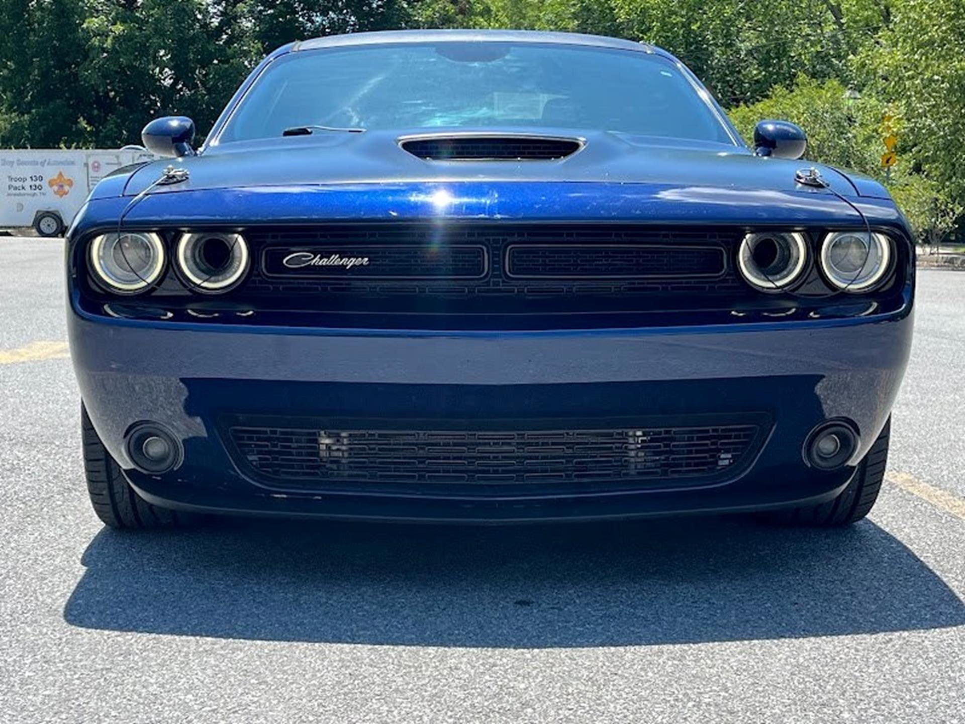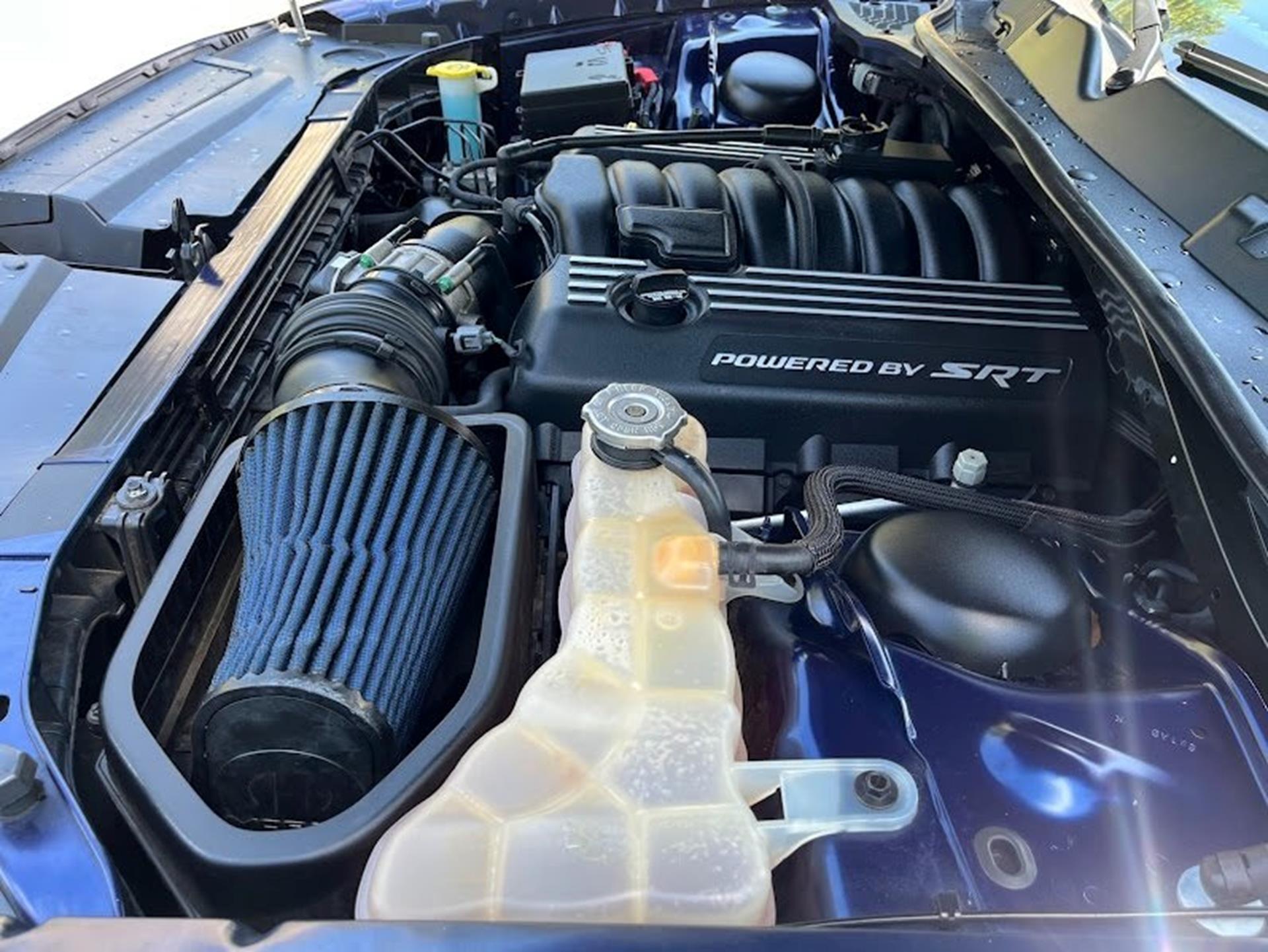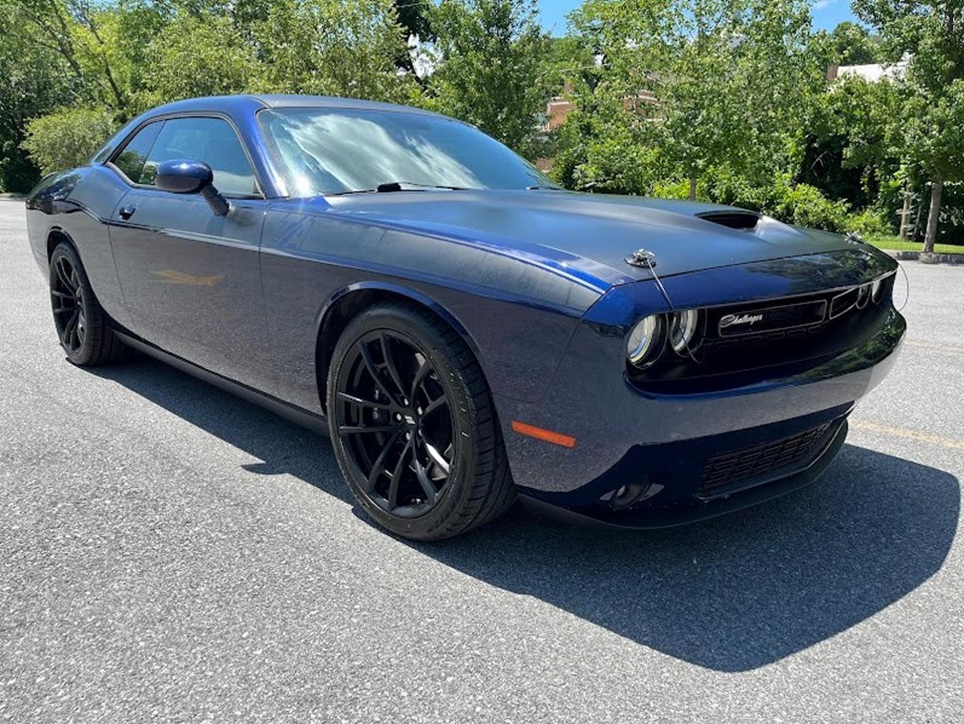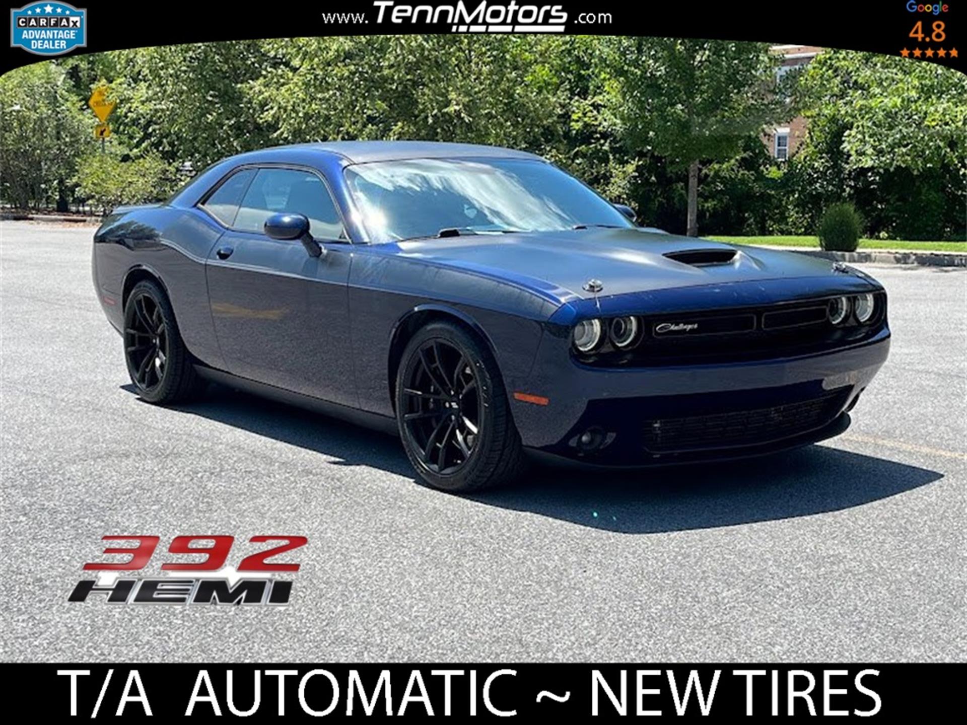 INFORMATION ABOUT THIS VEHICLE AND WHAT FEATURES IT IS EQUIPPED WITH:, ***NAVIGATION***, Fresh Oil Change, Backup Camera/ Rearview Camera, Bluetooth, Cruise Control, Navigation System, Apple Carplay/ Android Auto, Touchscreen Controls, Keyless Access, Push Button Start, Automatic Headlights, Voice Recognition, Smartphone App Integration, Wi-Fi Hotspot, USB Port, Aux Input, Leather Seats, Bench Seat, Sirius XM Radio/ Satellite Radio, Parking Sensors, Power Seats, Multi-Zone Climate Control, Alloy Wheels, Security System, Steering Wheel Controls, Brake Assist. 2017 Dodge Challenger R/T RWD Contusion Blue Pearlcoat 8-Speed Automatic SRT HEMI 6.4L V8 MDS