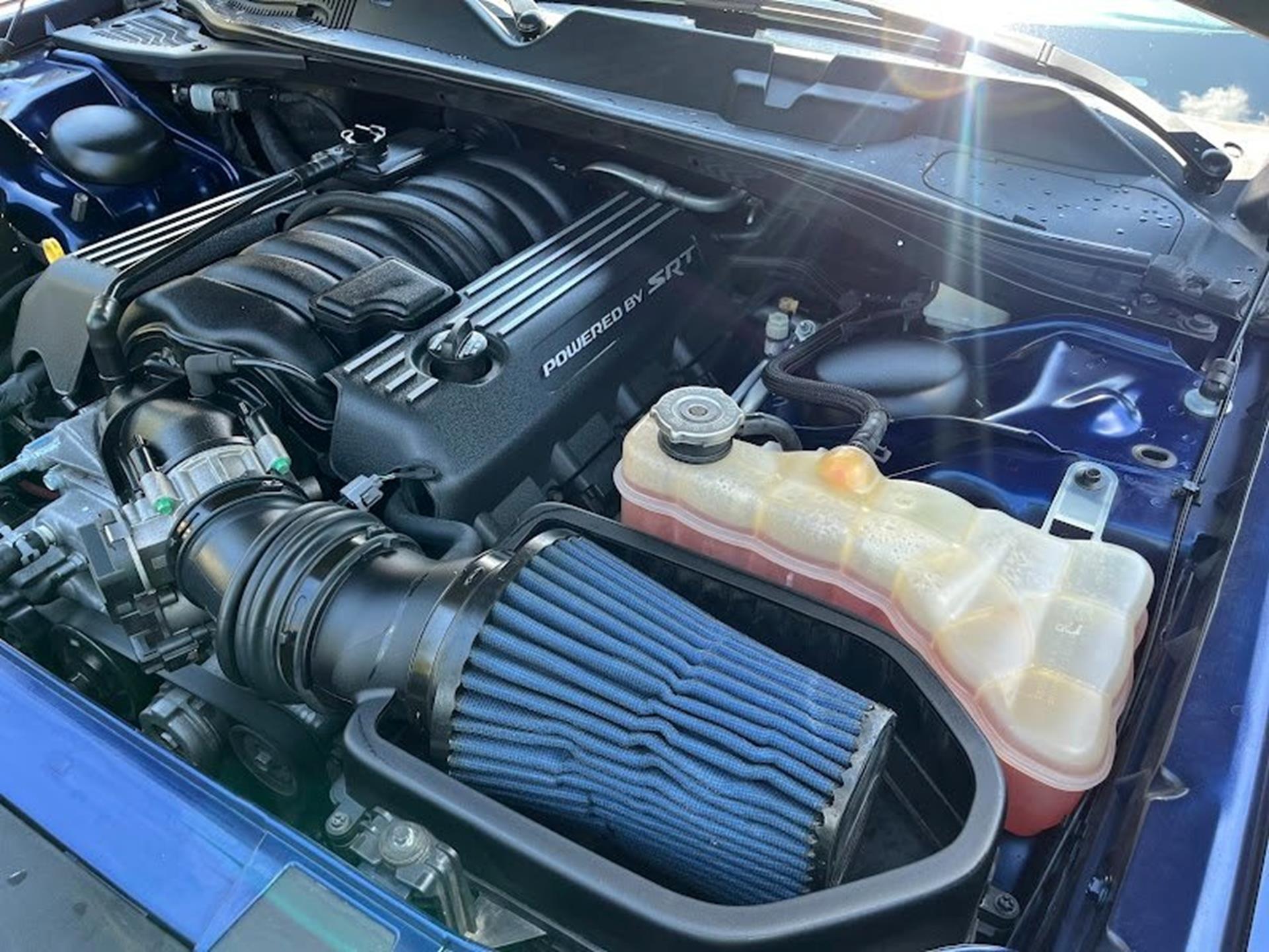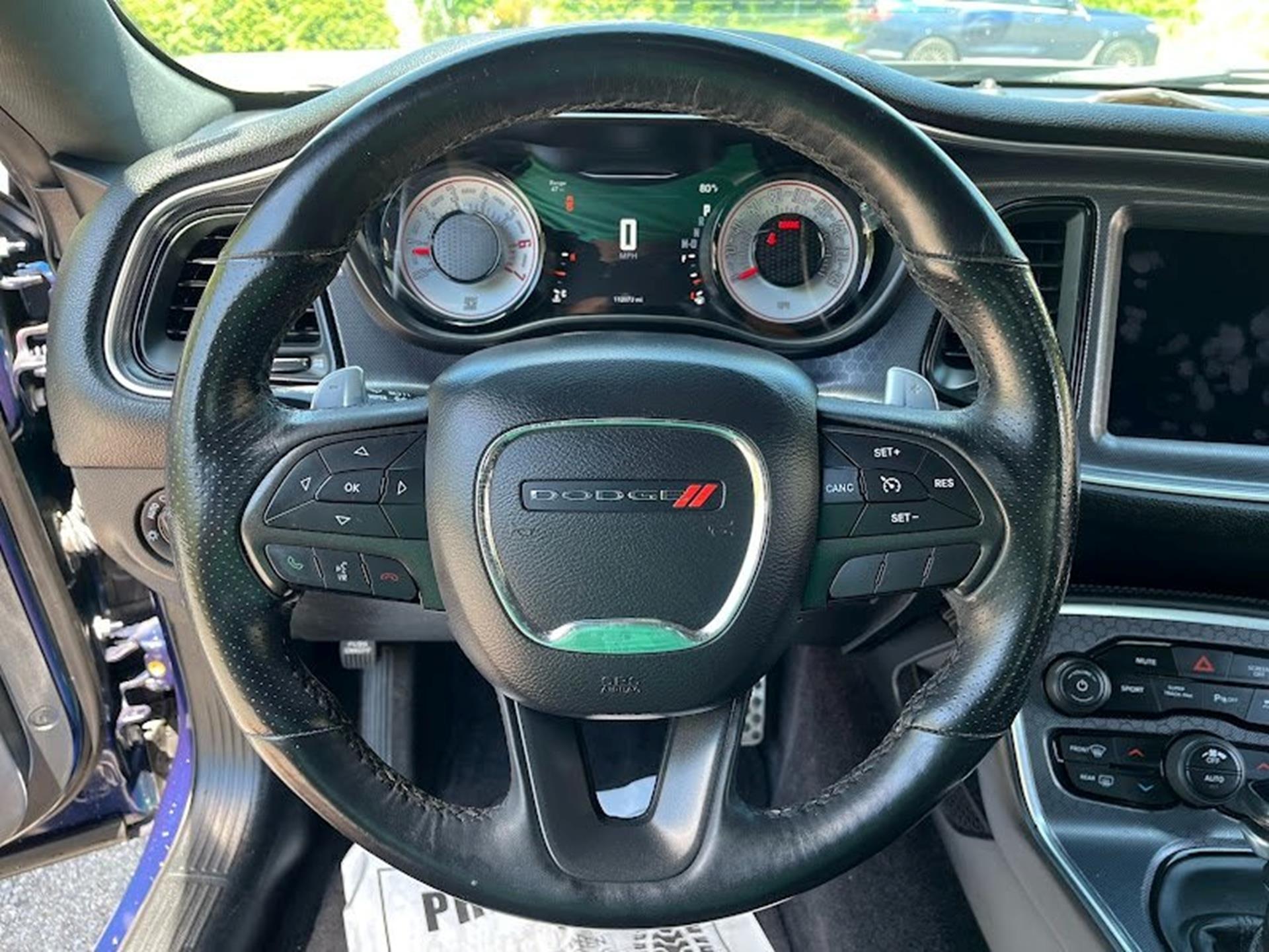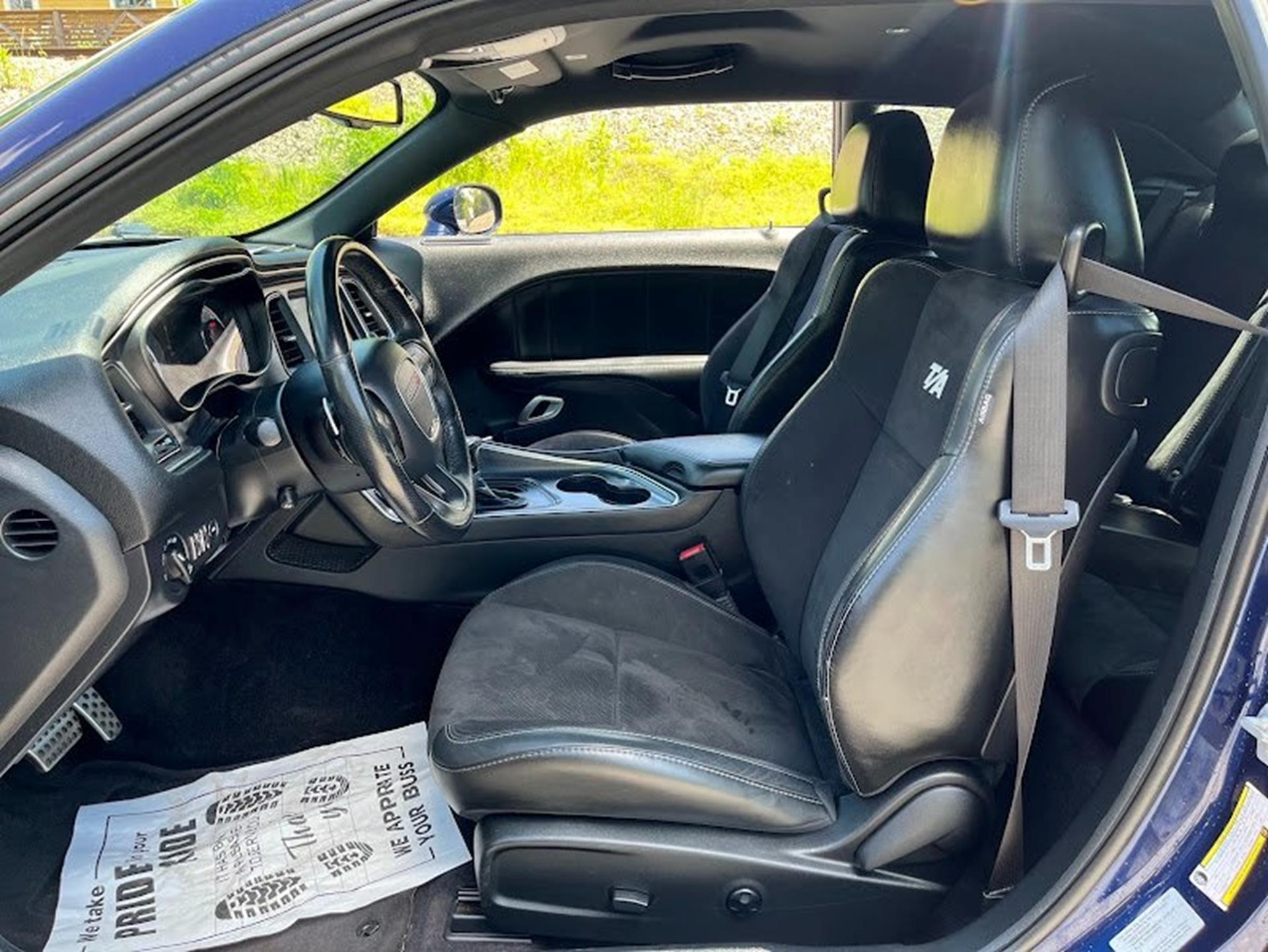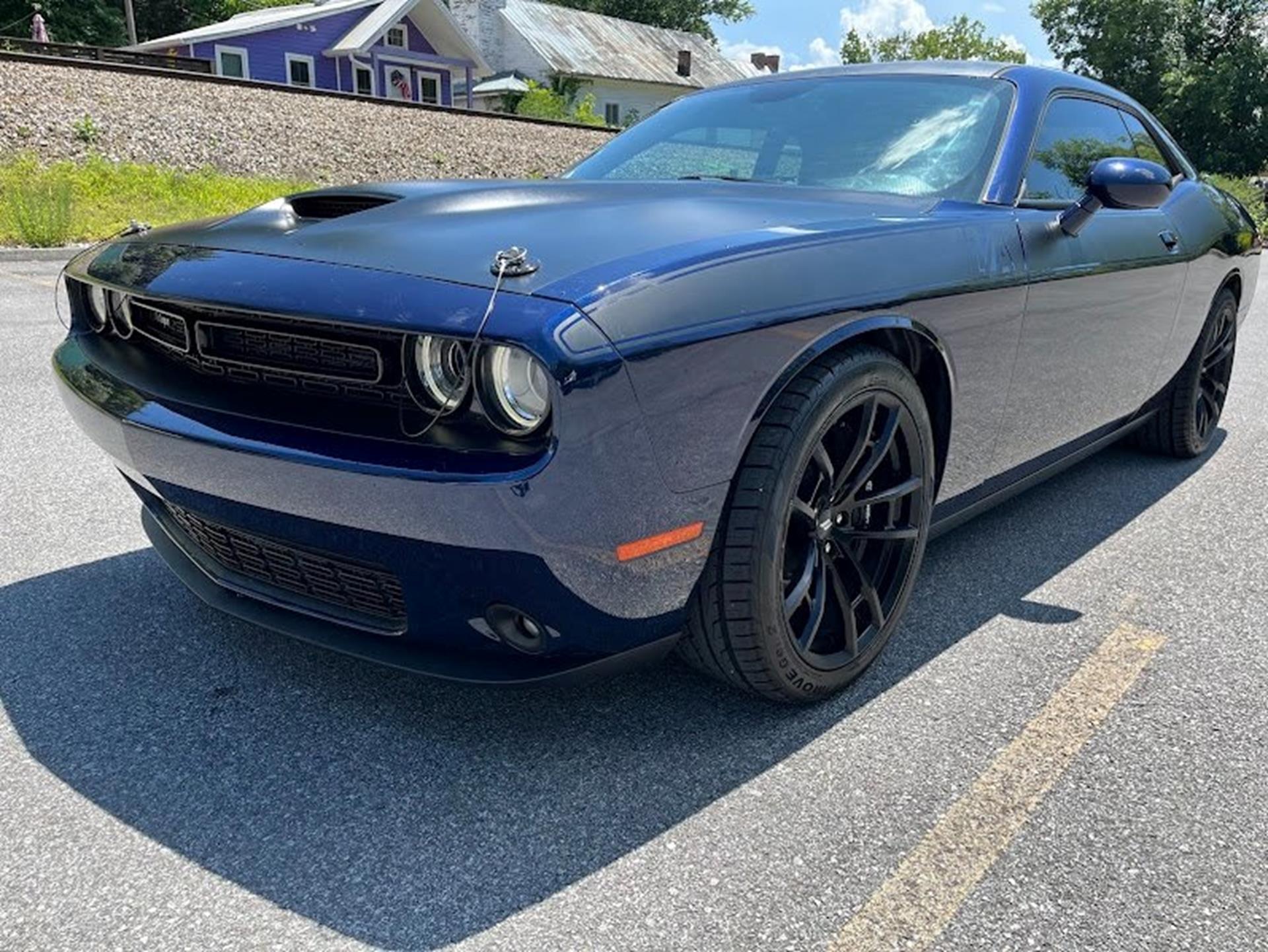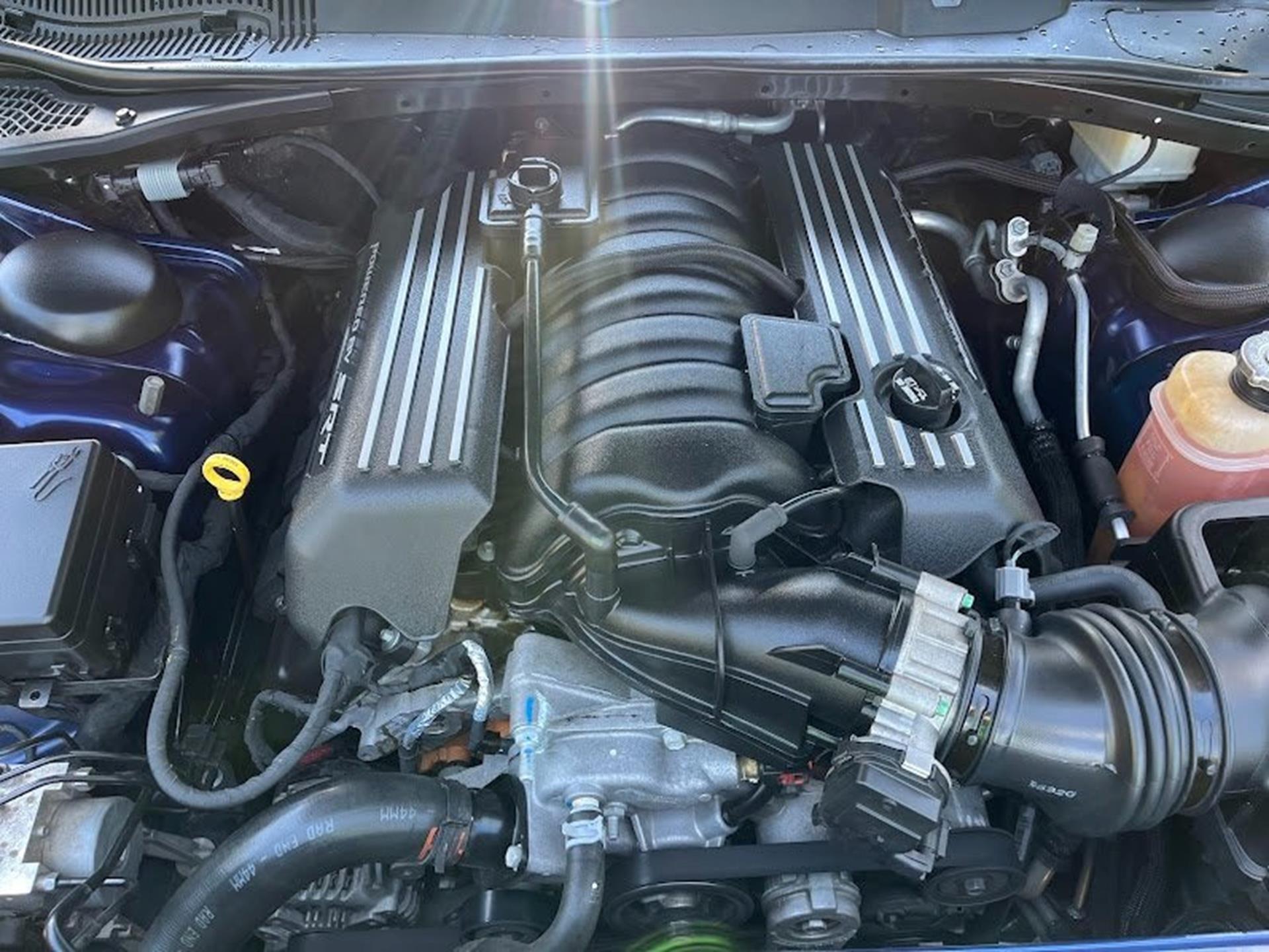 INFORMATION ABOUT THIS VEHICLE AND WHAT FEATURES IT IS EQUIPPED WITH:, ***NAVIGATION***, Fresh Oil Change, Backup Camera/ Rearview Camera, Bluetooth, Cruise Control, Navigation System, Apple Carplay/ Android Auto, Touchscreen Controls, Keyless Access, Push Button Start, Automatic Headlights, Voice Recognition, Smartphone App Integration, Wi-Fi Hotspot, USB Port, Aux Input, Leather Seats, Bench Seat, Sirius XM Radio/ Satellite Radio, Parking Sensors, Power Seats, Multi-Zone Climate Control, Alloy Wheels, Security System, Steering Wheel Controls, Brake Assist. 2017 Dodge Challenger R/T RWD Contusion Blue Pearlcoat 8-Speed Automatic SRT HEMI 6.4L V8 MDS