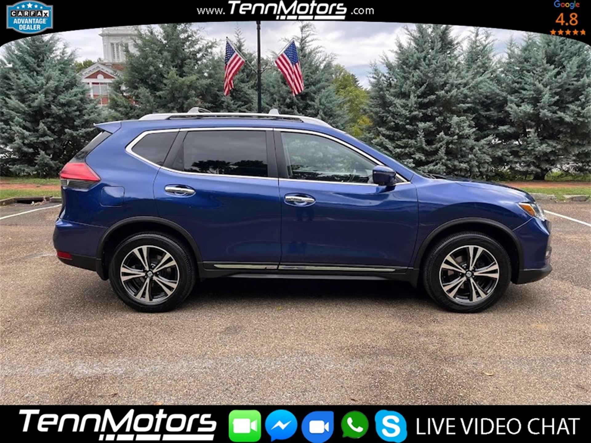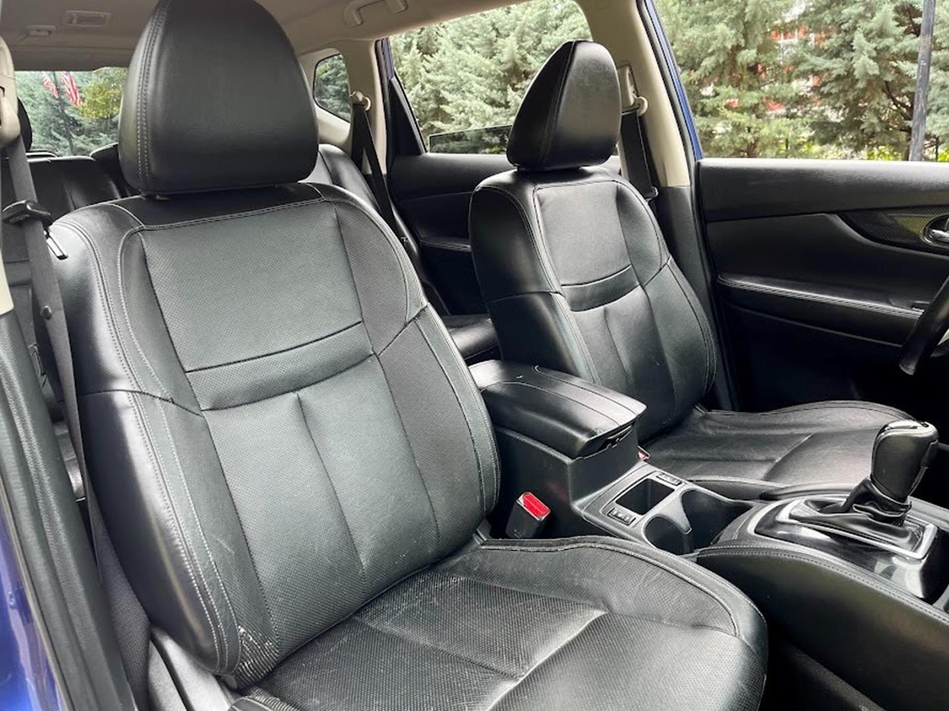 Clean CARFAX. CARFAX One-Owner. INFORMATION ABOUT THIS VEHICLE AND WHAT FEATURES IT IS EQUIPPED WITH:, ***NAVIGATION***, Fresh Oil Change, Backup Camera/ Rearview Camera, Bluetooth, Cruise Control, 360 Degree Camera, Blind Spot Monitors, Heated Seats, Navigation System, Apple Carplay/ Android Auto, Touchscreen Controls, Keyless Access, Push Button Start, Automatic Headlights, Voice Recognition, Smartphone App Integration, USB Port, Aux Input, Leather Seats, Sirius XM Radio/ Satellite Radio, Parking Sensors, Memory Seat, Power Seats, Multi-Zone Climate Control, Premium Audio, Alloy Wheels, Security System, Steering Wheel Controls, Brake Assist, Homelink, Premium Sound System, AWD. 2017 Nissan Rogue SL AWD Caspian Blue CVT with Xtronic 2.5L I4 DOHC 16V