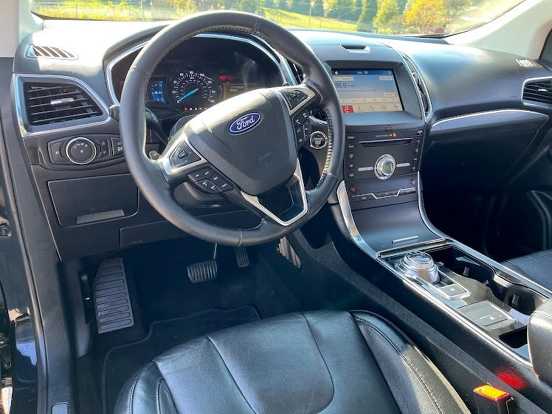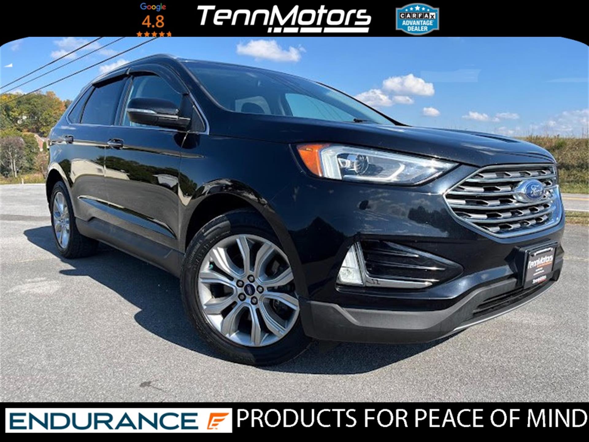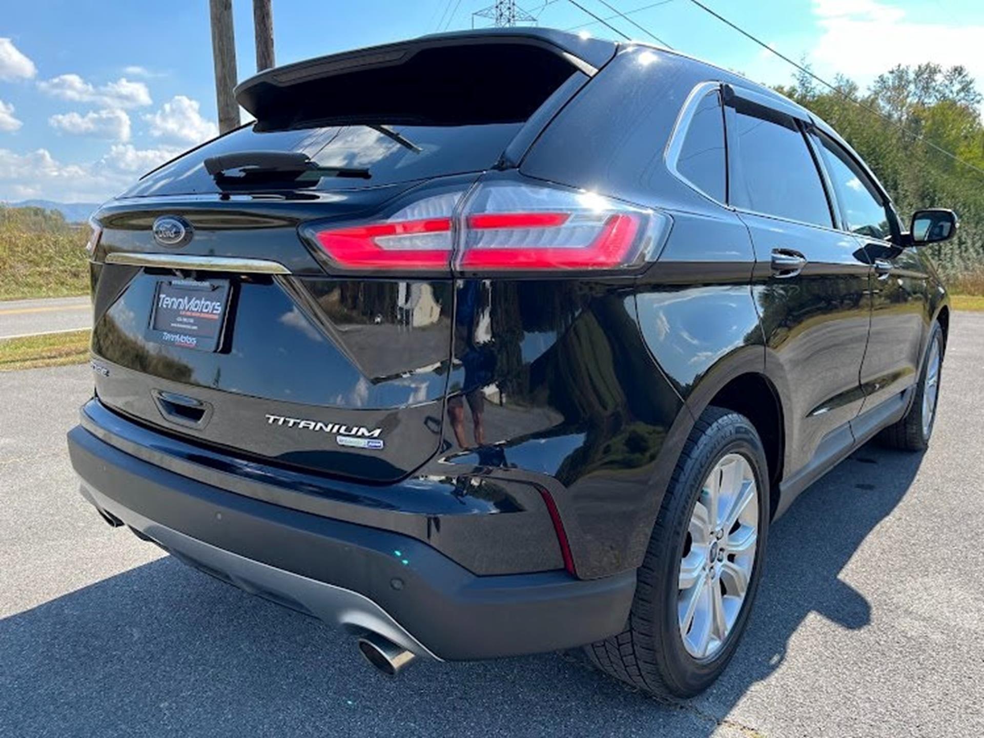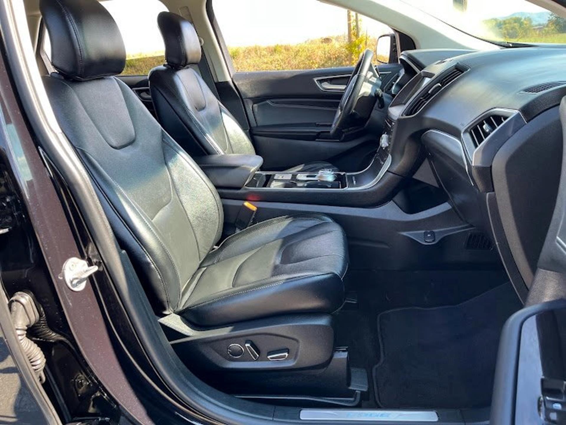 Clean CARFAX. INFORMATION ABOUT THIS VEHICLE AND WHAT FEATURES IT IS EQUIPPED WITH:, Fresh Oil Change, Backup Camera/ Rearview Camera, Bluetooth, Cruise Control, Collision Warning Alert System, Blind Spot Monitors, Heated Seats, Lane Keeping Assist, Apple Carplay/ Android Auto, Adaptive Headlights, Touchscreen Controls, Keyless Access, Push Button Start, Automatic Headlights, Smartphone App Integration, Wi-Fi Hotspot, USB Port, Remote Start, Leather Seats, Bench Seat, Sirius XM Radio/ Satellite Radio, Parking Sensors, Rain Sensing Windshield Wipers, Memory Seat, Power Seats, Multi-Zone Climate Control, Premium Audio, Alloy Wheels, Security System, Steering Wheel Controls, Brake Assist, Homelink, Premium Sound System, AWD. 2019 Ford Edge Titanium AWD Black Metallic 8-Speed Automatic EcoBoost 2.0L I4 GTDi DOHC Turbocharged VCT