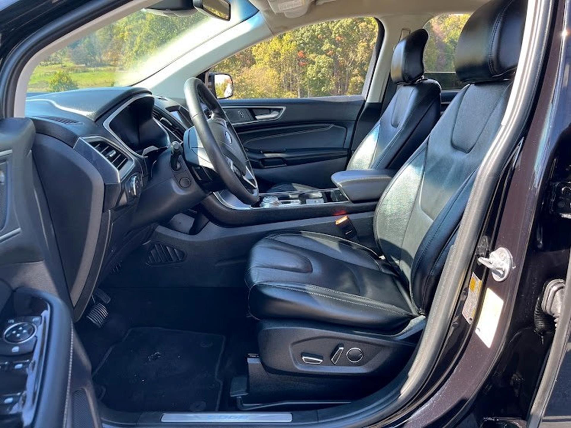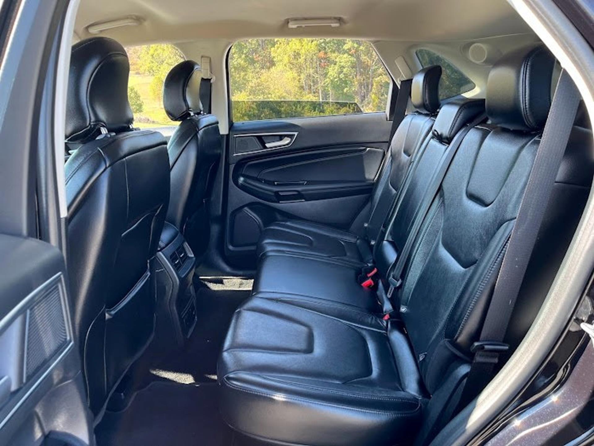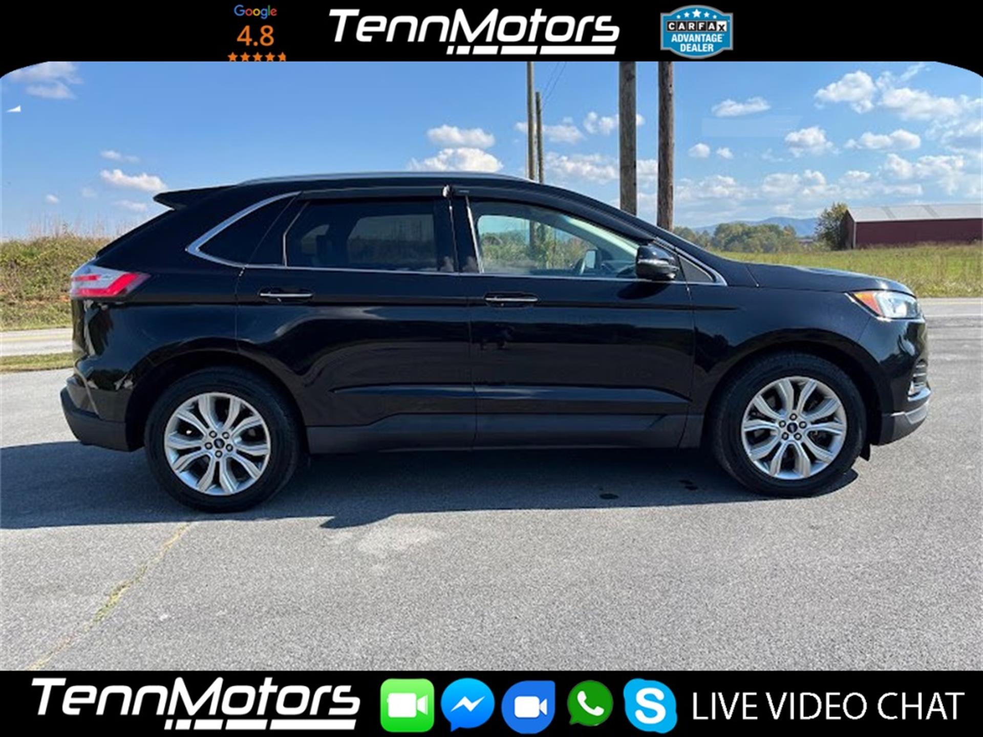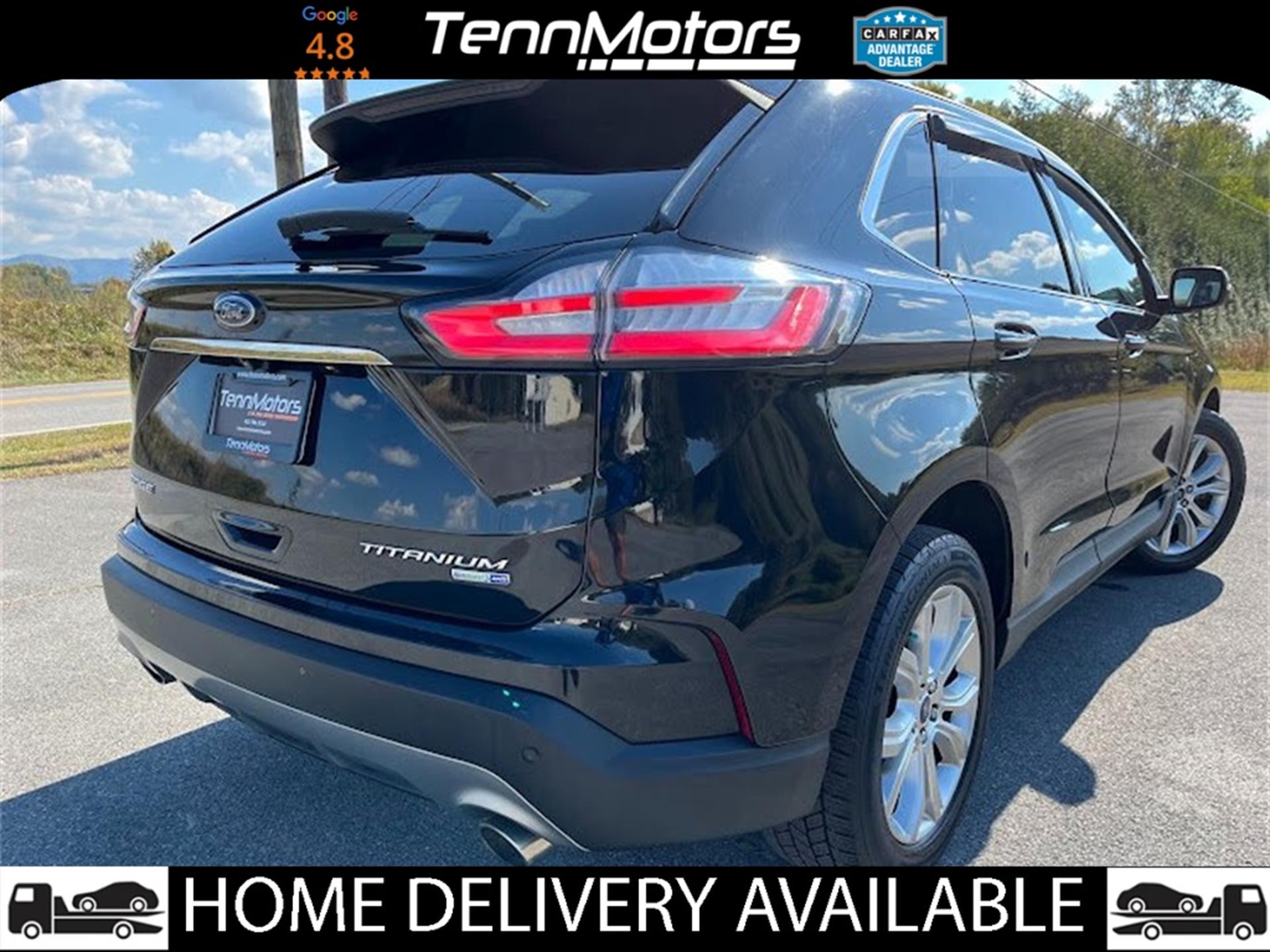 Clean CARFAX. INFORMATION ABOUT THIS VEHICLE AND WHAT FEATURES IT IS EQUIPPED WITH:, Fresh Oil Change, Backup Camera/ Rearview Camera, Bluetooth, Cruise Control, Collision Warning Alert System, Blind Spot Monitors, Heated Seats, Lane Keeping Assist, Apple Carplay/ Android Auto, Adaptive Headlights, Touchscreen Controls, Keyless Access, Push Button Start, Automatic Headlights, Smartphone App Integration, Wi-Fi Hotspot, USB Port, Remote Start, Leather Seats, Bench Seat, Sirius XM Radio/ Satellite Radio, Parking Sensors, Rain Sensing Windshield Wipers, Memory Seat, Power Seats, Multi-Zone Climate Control, Premium Audio, Alloy Wheels, Security System, Steering Wheel Controls, Brake Assist, Homelink, Premium Sound System, AWD. 2019 Ford Edge Titanium AWD Black Metallic 8-Speed Automatic EcoBoost 2.0L I4 GTDi DOHC Turbocharged VCT
