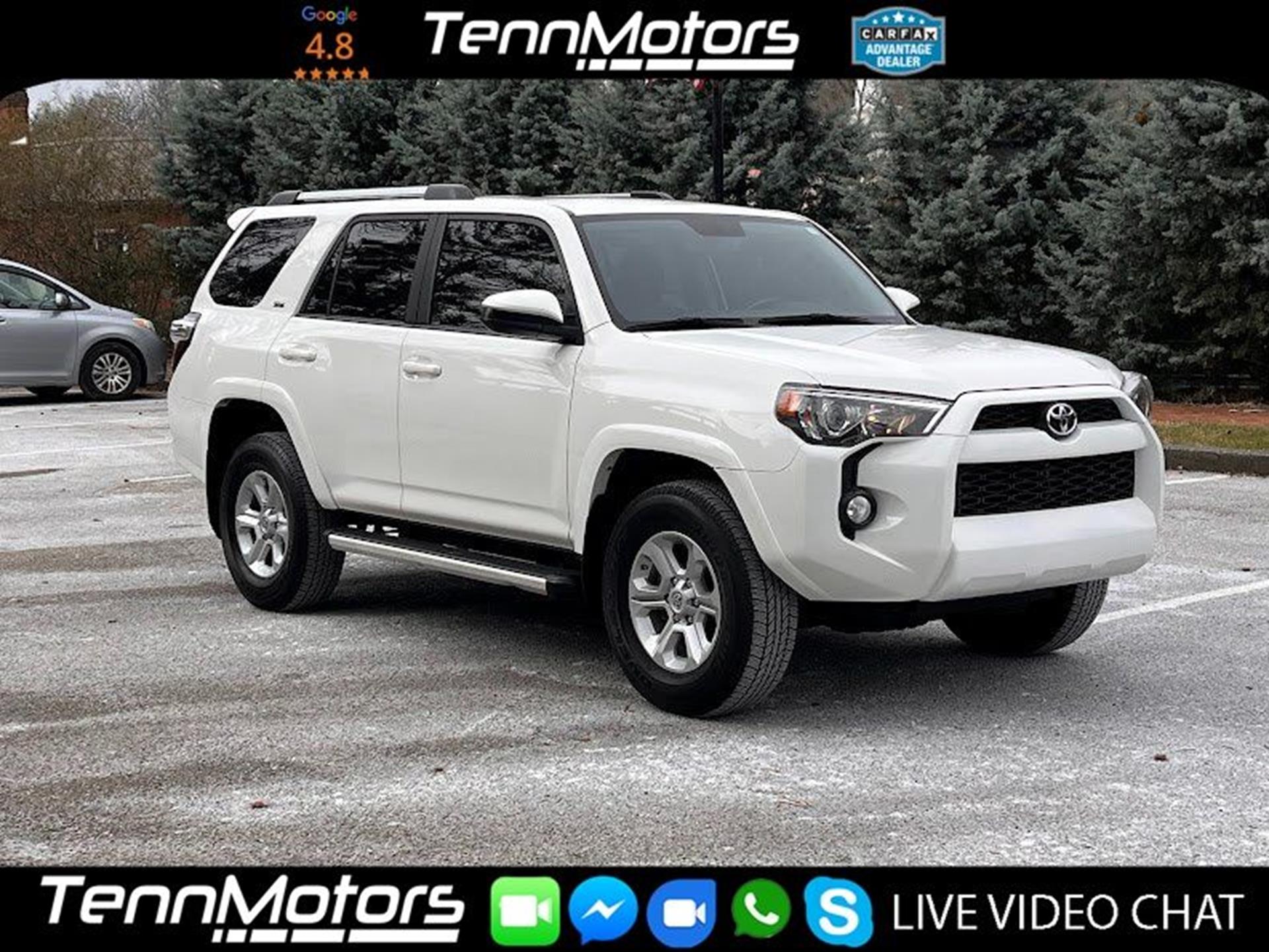 CARFAX One-Owner. INFORMATION ABOUT THIS VEHICLE AND WHAT FEATURES IT IS EQUIPPED WITH:, ***NAVIGATION***, Fresh Oil Change, Backup Camera/ Rearview Camera, Bluetooth, Cruise Control, Navigation System, Touchscreen Controls, Keyless Access, Voice Recognition, USB Port, Aux Input, Sirius XM Radio/ Satellite Radio, Power Seats, Alloy Wheels, Security System, Steering Wheel Controls, Brake Assist, 4WD, Black Graphite Cloth, 17'' x 7.0'' 6-Spoke Alloy Wheels, ABS brakes, Alloy wheels, Electronic Stability Control, Heated door mirrors, Illuminated entry, Low tire pressure warning, Remote keyless entry, Traction control. 2019 Toyota 4Runner SR5 4WD Super White 5-Speed Automatic with Overdrive 4.0L V6 SMPI DOHC