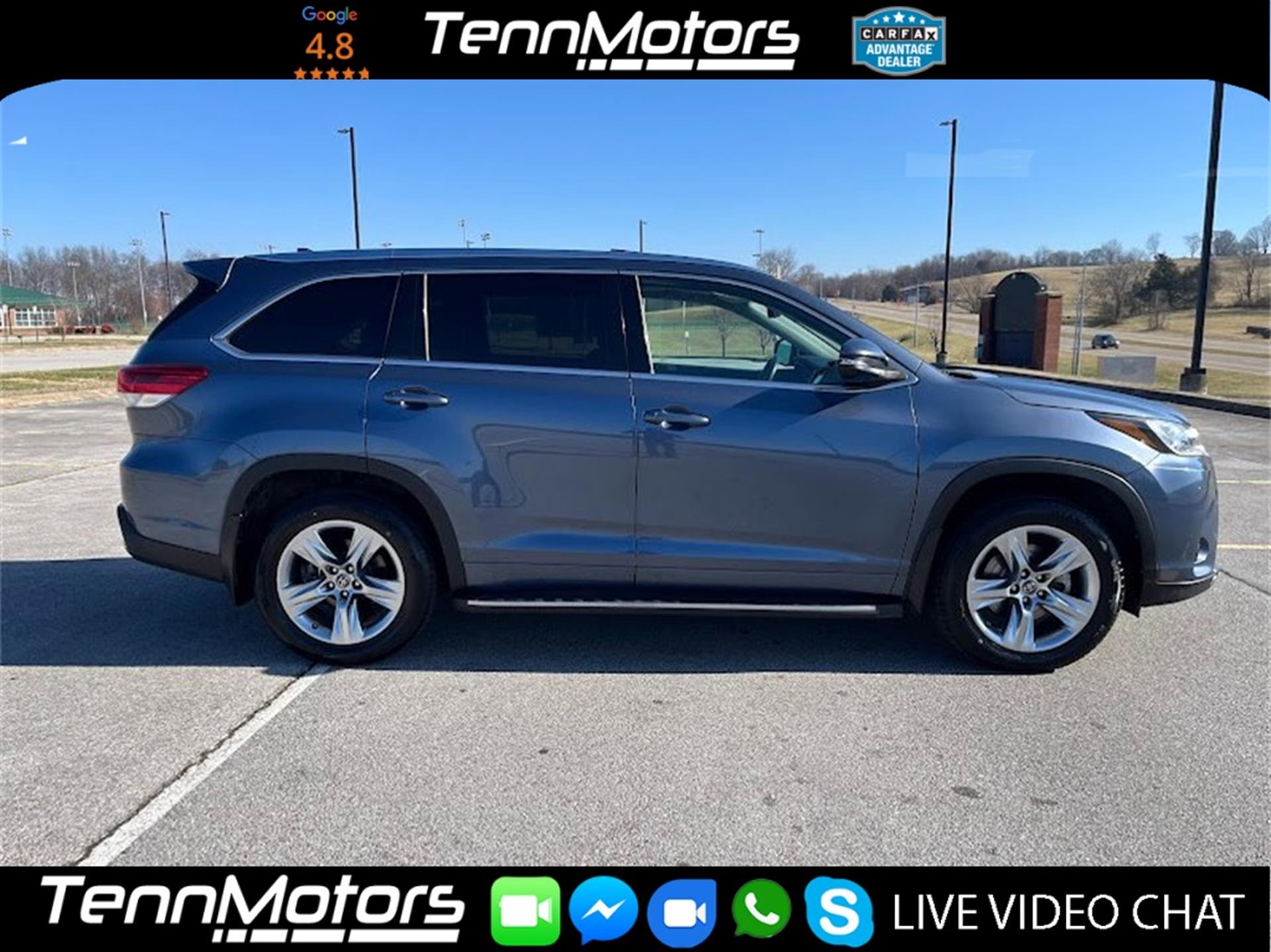 Clean CARFAX. CARFAX One-Owner. INFORMATION ABOUT THIS VEHICLE AND WHAT FEATURES IT IS EQUIPPED WITH:, ***NAVIGATION***, Fresh Oil Change, Backup Camera/ Rearview Camera, Bluetooth, Cruise Control, Collision Warning Alert System, Blind Spot Monitors, Heated Seats, Cooled Seats/ Ventilated Seats, Lane Keeping Assist, Navigation System, Sunroof/ Moonroof, Adaptive Headlights, Touchscreen Controls, Keyless Access, Push Button Start, Automatic Headlights, Voice Recognition, Smartphone App Integration, USB Port, Aux Input, Leather Seats, Bench Seat, 3rd Row Seats/ Third Row Seats, Parking Sensors, Memory Seat, Power Seats, Multi-Zone Climate Control, Premium Audio, Alloy Wheels, Security System, Steering Wheel Controls, Brake Assist, Homelink, Premium Sound System, ABS brakes, Active Cruise Control, Alloy wheels, Electronic Stability Control, Front dual zone A/C, Heated door mirrors, Heated front seats, Heated/Ventilated Front Bucket Seats, Illuminated entry, Low tire pressure warning, Navigation System, Perforated Leather Seat Trim, Power Liftgate, Power moonroof, Remote keyless entry, Traction control. 2019 Toyota Highlander Limited FWD Blue 8-Speed Automatic Electronic with ECT-i 3.5L V6