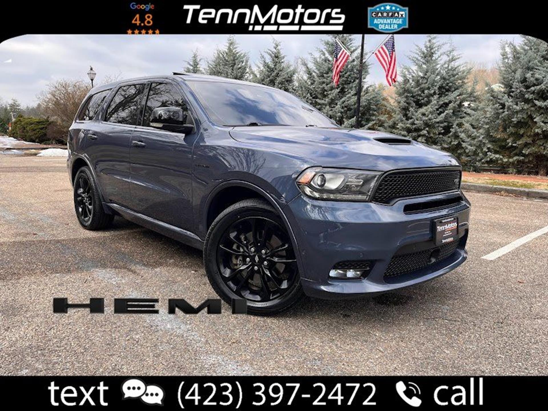 Clean CARFAX. INFORMATION ABOUT THIS VEHICLE AND WHAT FEATURES IT IS EQUIPPED WITH:, ***NAVIGATION***, Fresh Oil Change, Backup Camera/ Rearview Camera, Bluetooth, Cruise Control, Collision Avoidance System, Collision Warning Alert System, Active Parking Assist, Blind Spot Monitors, Heated Seats, Heated Rear Seats, Navigation System, Apple Carplay/ Android Auto, Sunroof/ Moonroof, Adaptive Headlights, Touchscreen Controls, Keyless Access, Push Button Start, Automatic Headlights, Voice Recognition, Smartphone App Integration, Wi-Fi Hotspot, Aux Input, Remote Start, Leather Seats, Captain Chairs, Bench Seat, 3rd Row Seats/ Third Row Seats, Sirius XM Radio/ Satellite Radio, Parking Sensors, Tow Package, Rain Sensing Windshield Wipers, Memory Seat, Power Seats, Multi-Zone Climate Control, Premium Audio, Premium Wheels, Alloy Wheels, Security System, Steering Wheel Controls, Trailer Hitch, Brake Assist, Homelink, Premium Sound System. 2020 Dodge Durango R/T RWD Reactor Blue Pearlcoat 8-Speed Automatic HEMI 5.7L V8 Multi Displacement VVT