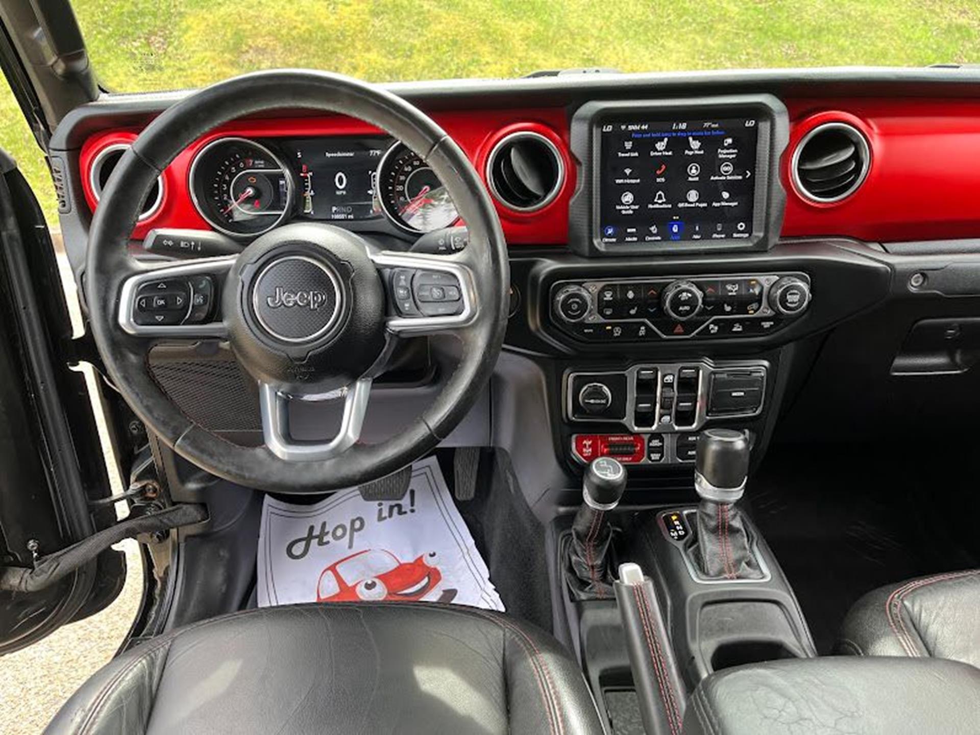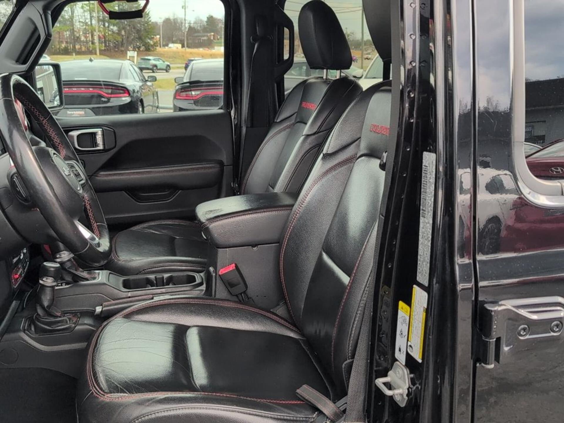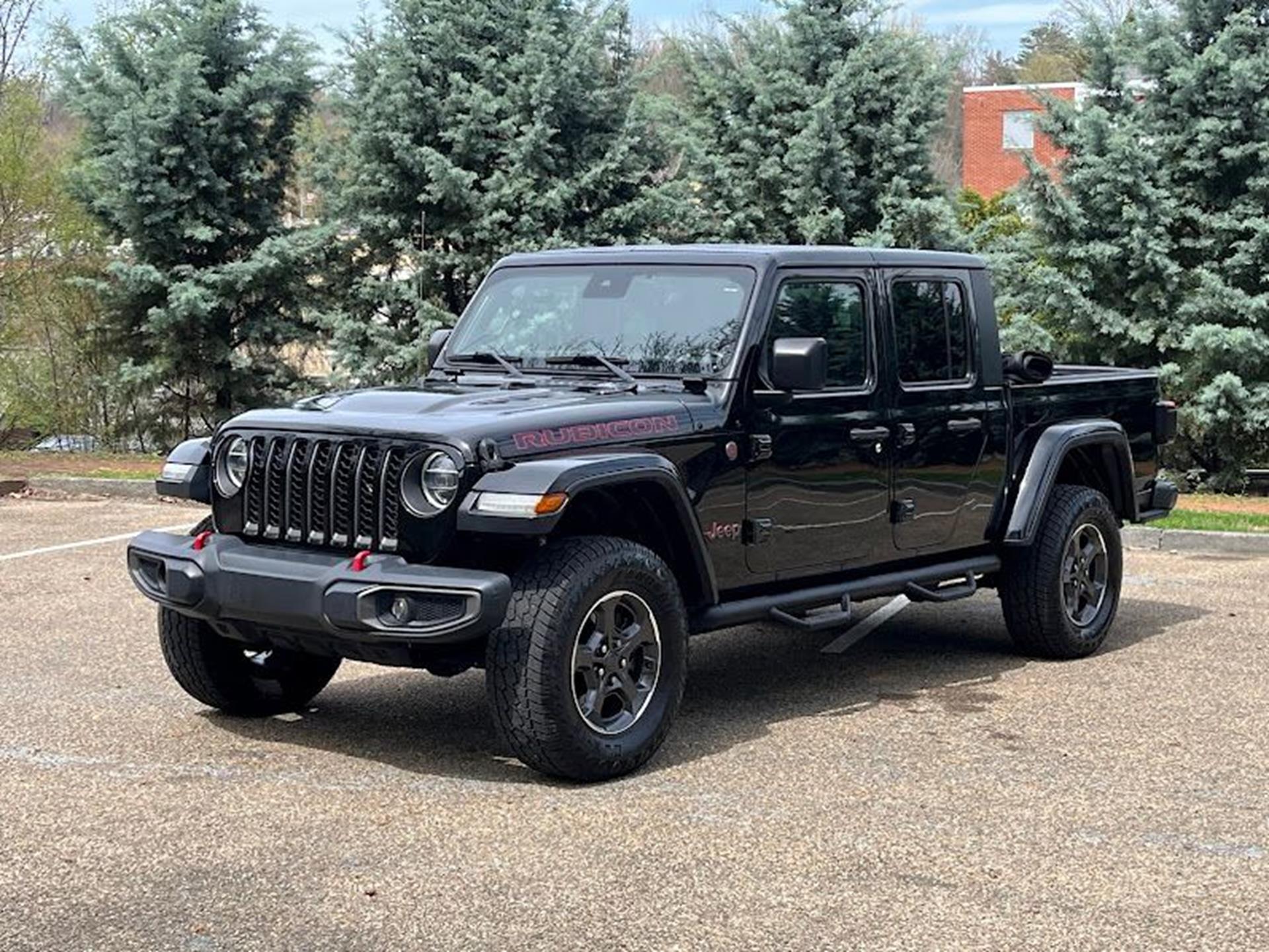 INFORMATION ABOUT THIS VEHICLE AND WHAT FEATURES IT IS EQUIPPED WITH:, ***NAVIGATION***, Fresh Oil Change, Backup Camera/ Rearview Camera, Bluetooth, Cruise Control, Blind Spot Monitors, Heated Seats, Navigation System, Apple Carplay/ Android Auto, Touchscreen Controls, Keyless Access, Push Button Start, Automatic Headlights, Voice Recognition, Smartphone App Integration, Aux Input, Remote Start, Leather Seats, Bench Seat, Sirius XM Radio/ Satellite Radio, Parking Sensors, Tow Package, Multi-Zone Climate Control, Premium Audio, Alloy Wheels, Security System, Steering Wheel Controls, Trailer Hitch, Brake Assist, Homelink, Premium Sound System. 2020 Jeep Gladiator Rubicon 4WD Black Clearcoat 8-Speed Automatic 3.6L V6 24V VVT