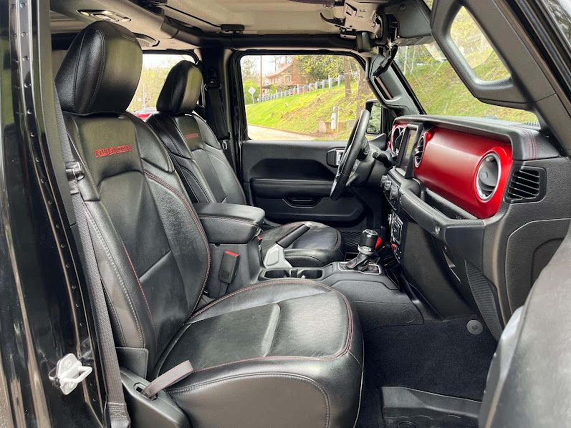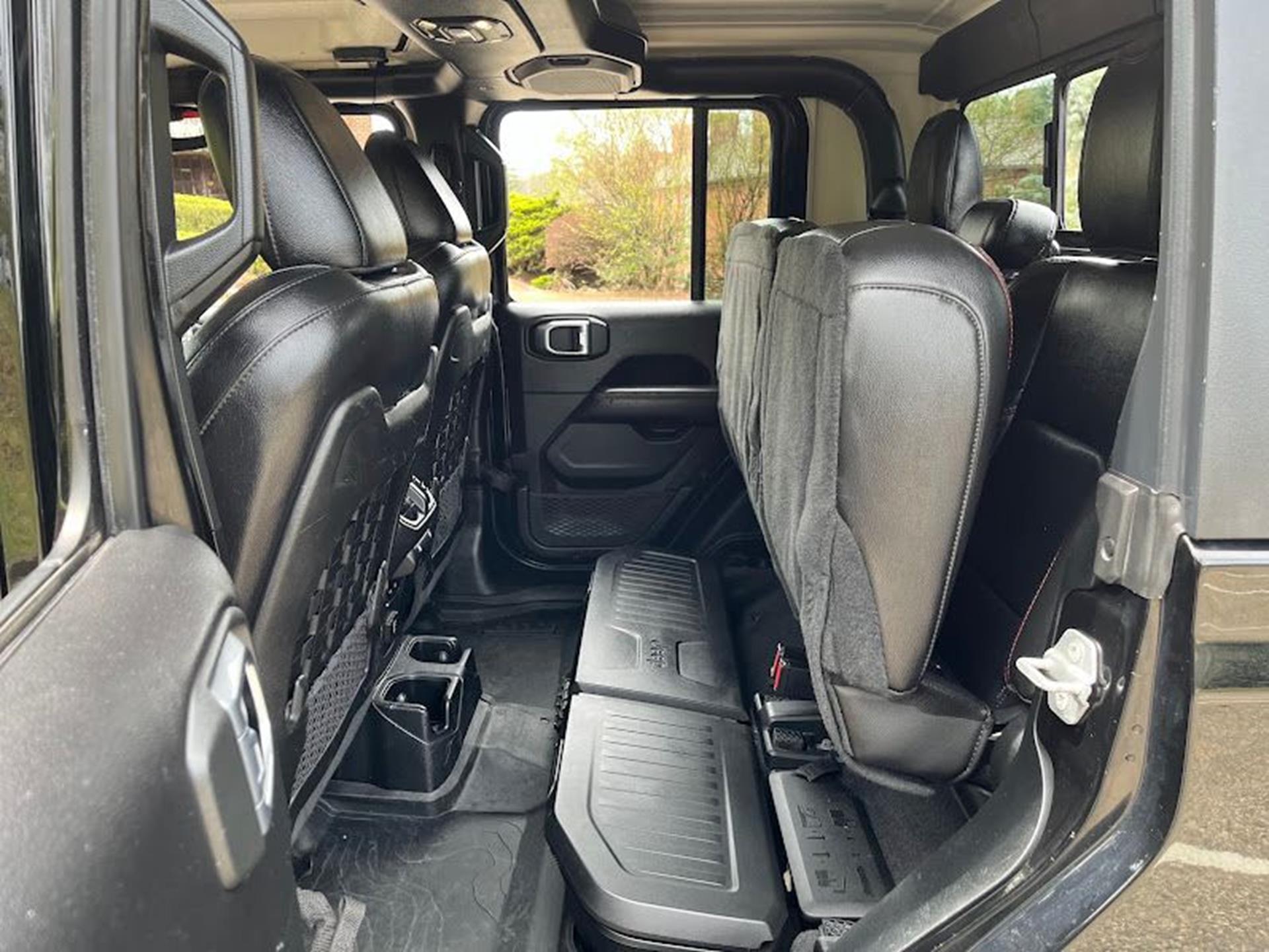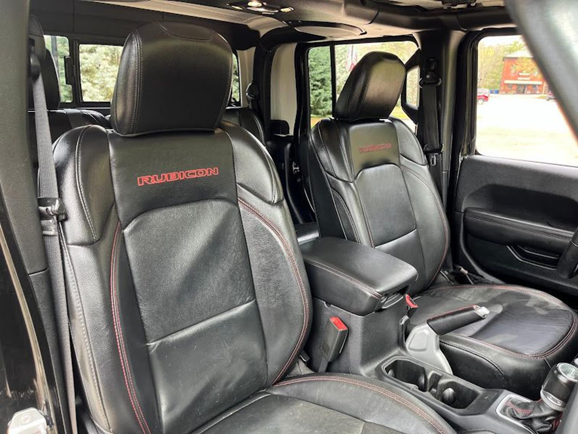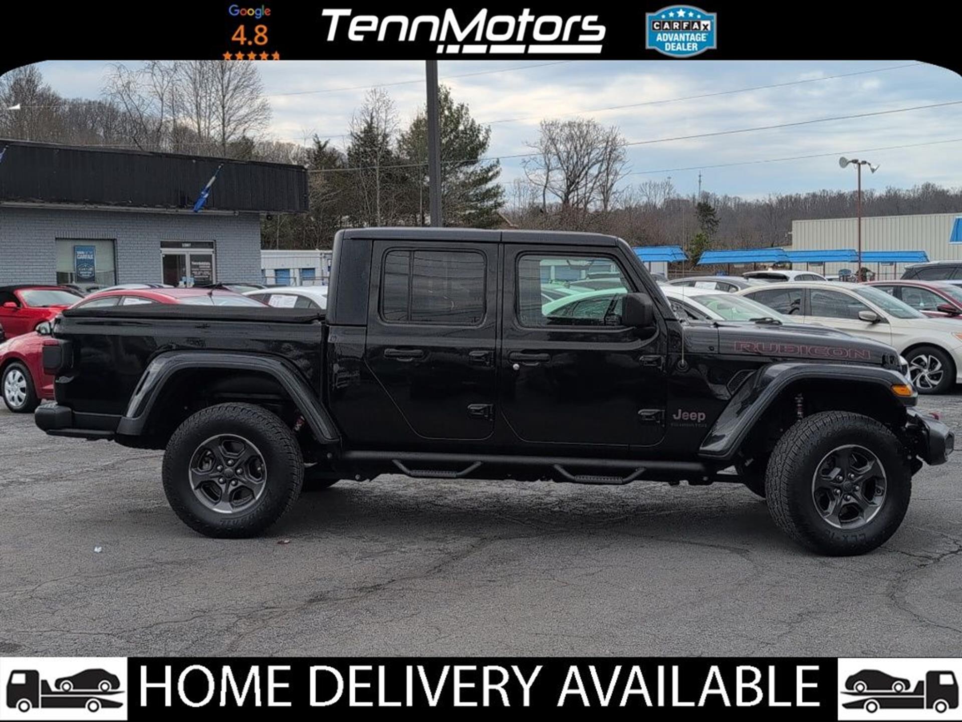 INFORMATION ABOUT THIS VEHICLE AND WHAT FEATURES IT IS EQUIPPED WITH:, ***NAVIGATION***, Fresh Oil Change, Backup Camera/ Rearview Camera, Bluetooth, Cruise Control, Blind Spot Monitors, Heated Seats, Navigation System, Apple Carplay/ Android Auto, Touchscreen Controls, Keyless Access, Push Button Start, Automatic Headlights, Voice Recognition, Smartphone App Integration, Aux Input, Remote Start, Leather Seats, Bench Seat, Sirius XM Radio/ Satellite Radio, Parking Sensors, Tow Package, Multi-Zone Climate Control, Premium Audio, Alloy Wheels, Security System, Steering Wheel Controls, Trailer Hitch, Brake Assist, Homelink, Premium Sound System. 2020 Jeep Gladiator Rubicon 4WD Black Clearcoat 8-Speed Automatic 3.6L V6 24V VVT