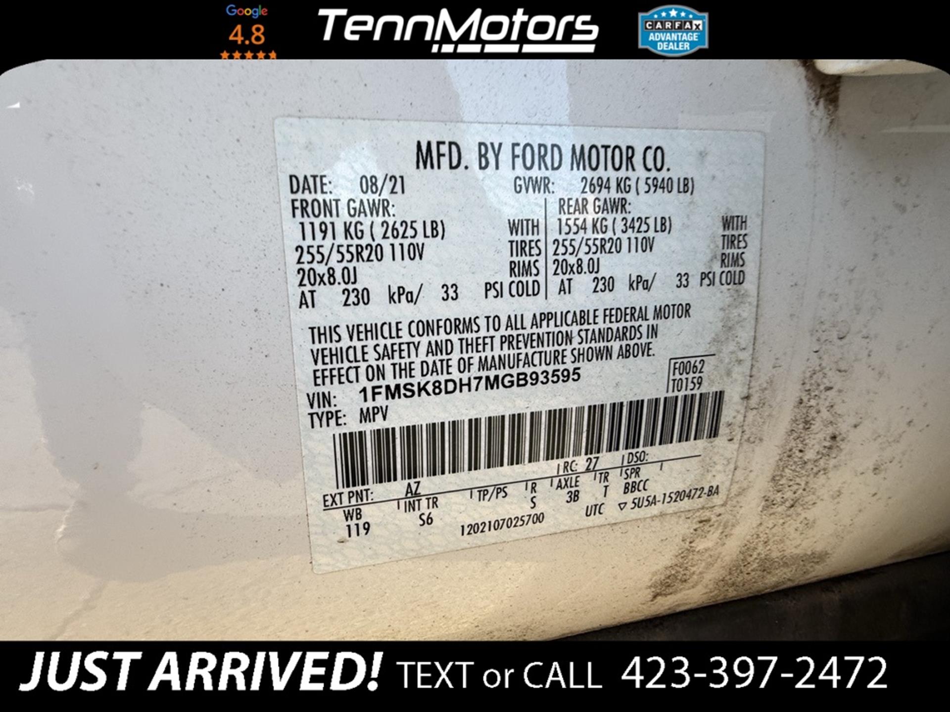 VIN: 1FMSK8DH7MGB93595