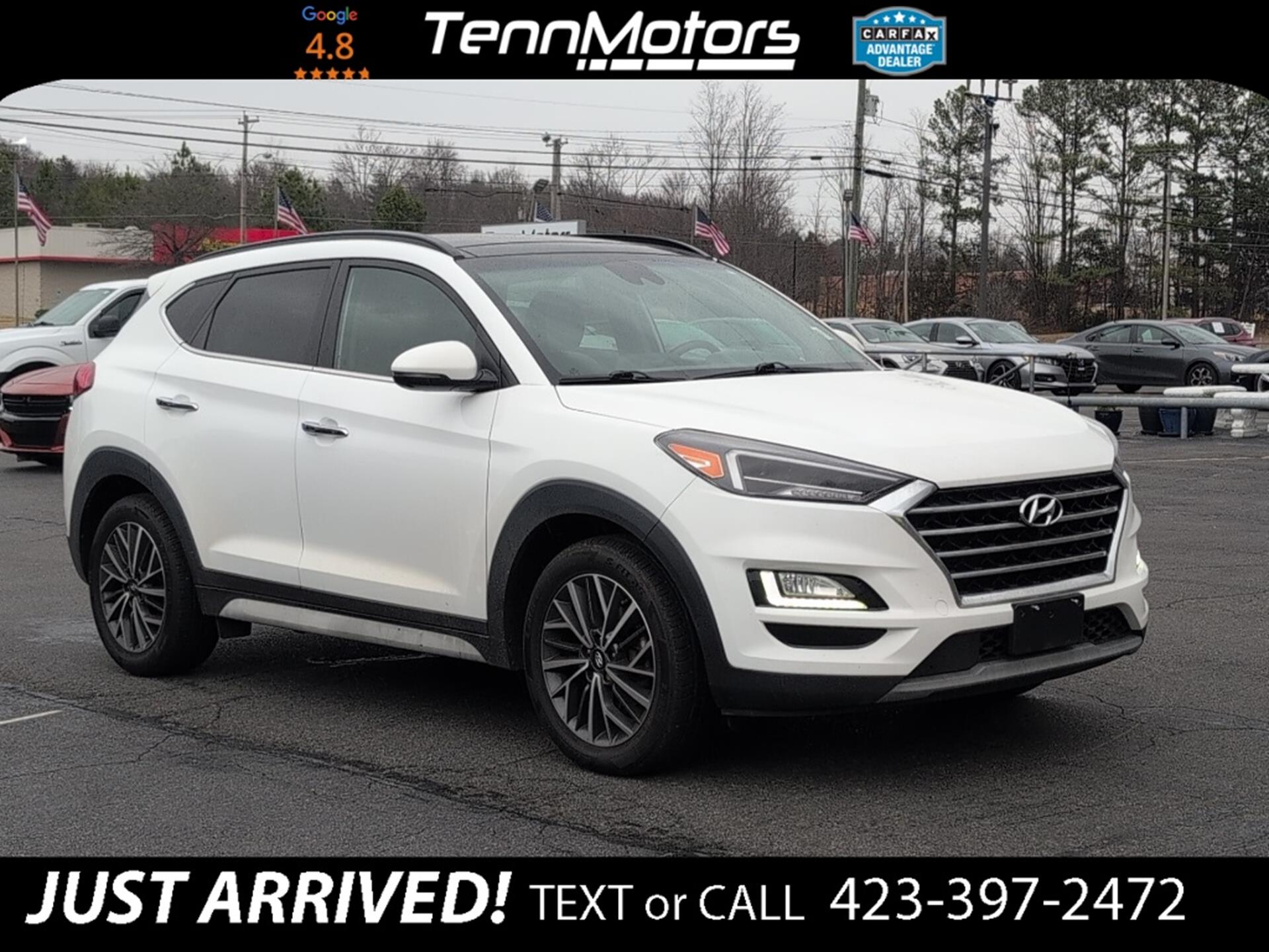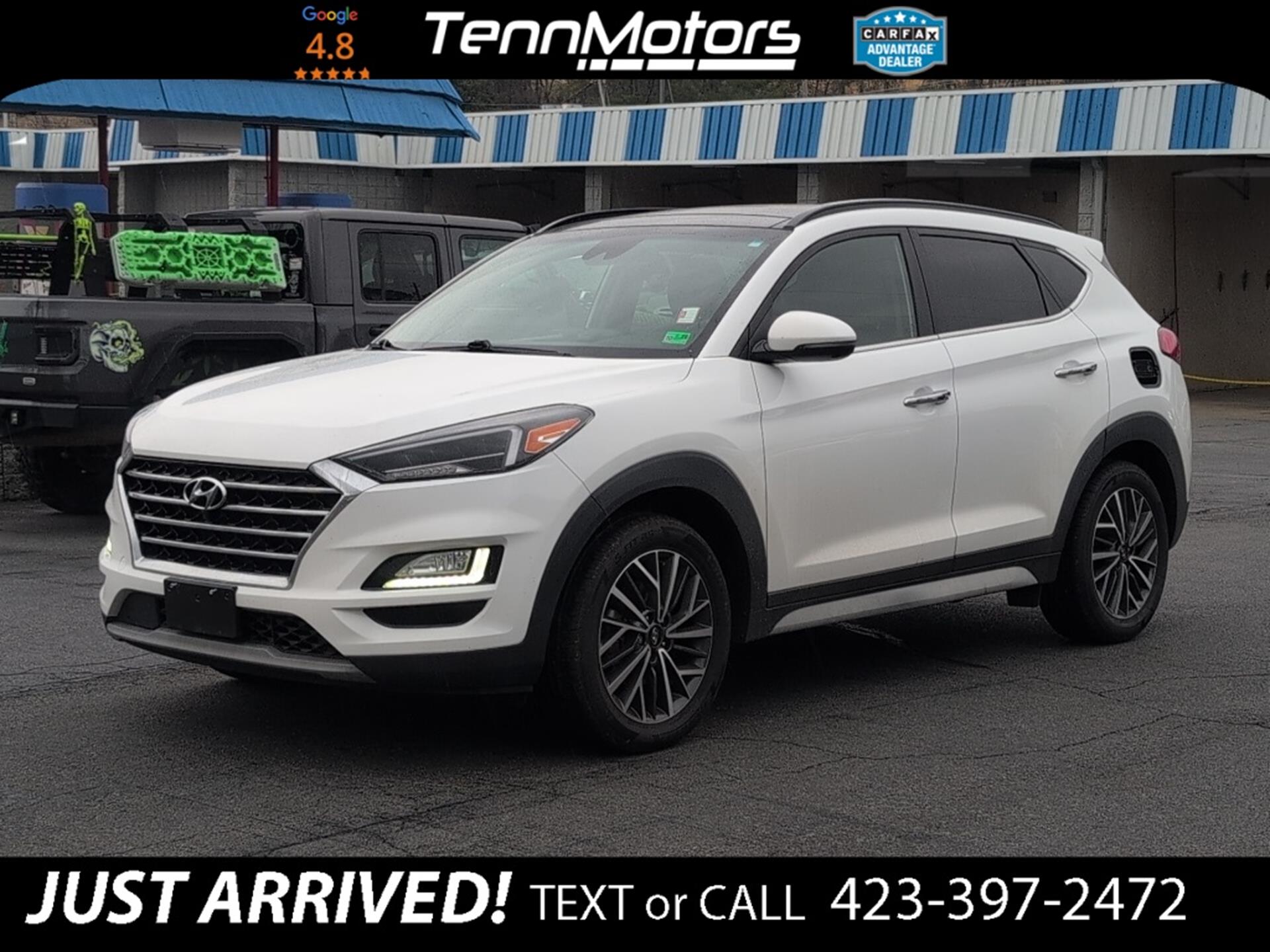 Clean CARFAX. CARFAX One-Owner. INFORMATION ABOUT THIS VEHICLE AND WHAT FEATURES IT IS EQUIPPED WITH:, ***NAVIGATION***, Fresh Oil Change, Backup Camera/ Rearview Camera, Bluetooth, Cruise Control, Collision Avoidance System, Collision Warning Alert System, 360 Degree Camera, Blind Spot Monitors, Heated Seats, Heated Rear Seats, Cooled Seats/ Ventilated Seats, Lane Keeping Assist, Navigation System, Apple Carplay/ Android Auto, Sunroof/ Moonroof, Adaptive Headlights, Touchscreen Controls, Keyless Access, Push Button Start, Automatic Headlights, Voice Recognition, Smartphone App Integration, USB Port, Aux Input, Remote Start, Leather Seats, Bench Seat, Sirius XM Radio/ Satellite Radio, Parking Sensors, Rain Sensing Windshield Wipers, Power Seats, Multi-Zone Climate Control, Alloy Wheels, Security System, Steering Wheel Controls, Brake Assist, Homelink. 2021 Hyundai Tucson Ultimate FWD Winter White 6-Speed Automatic with Shiftronic 2.4L I4 DGI DOHC 16V