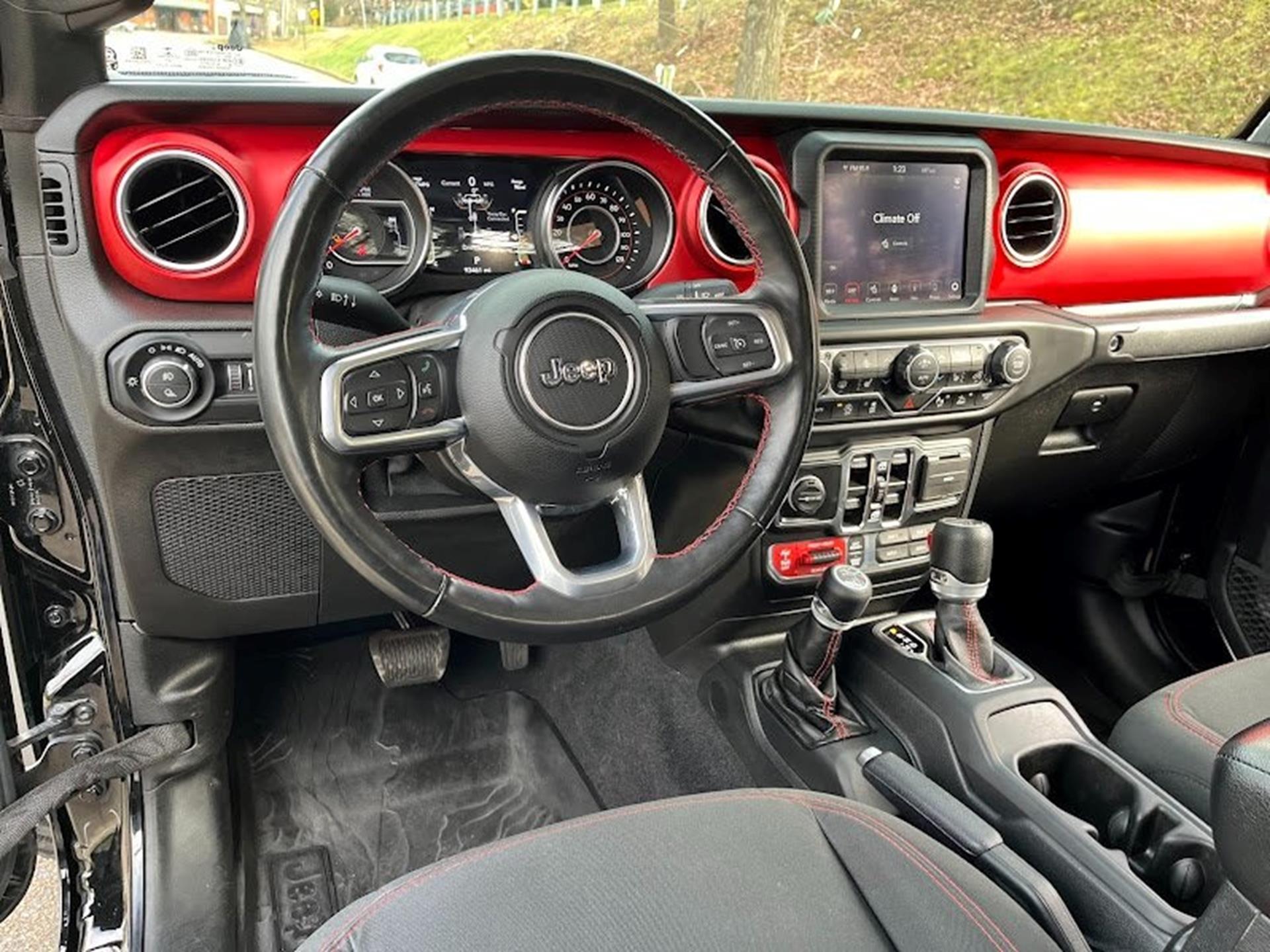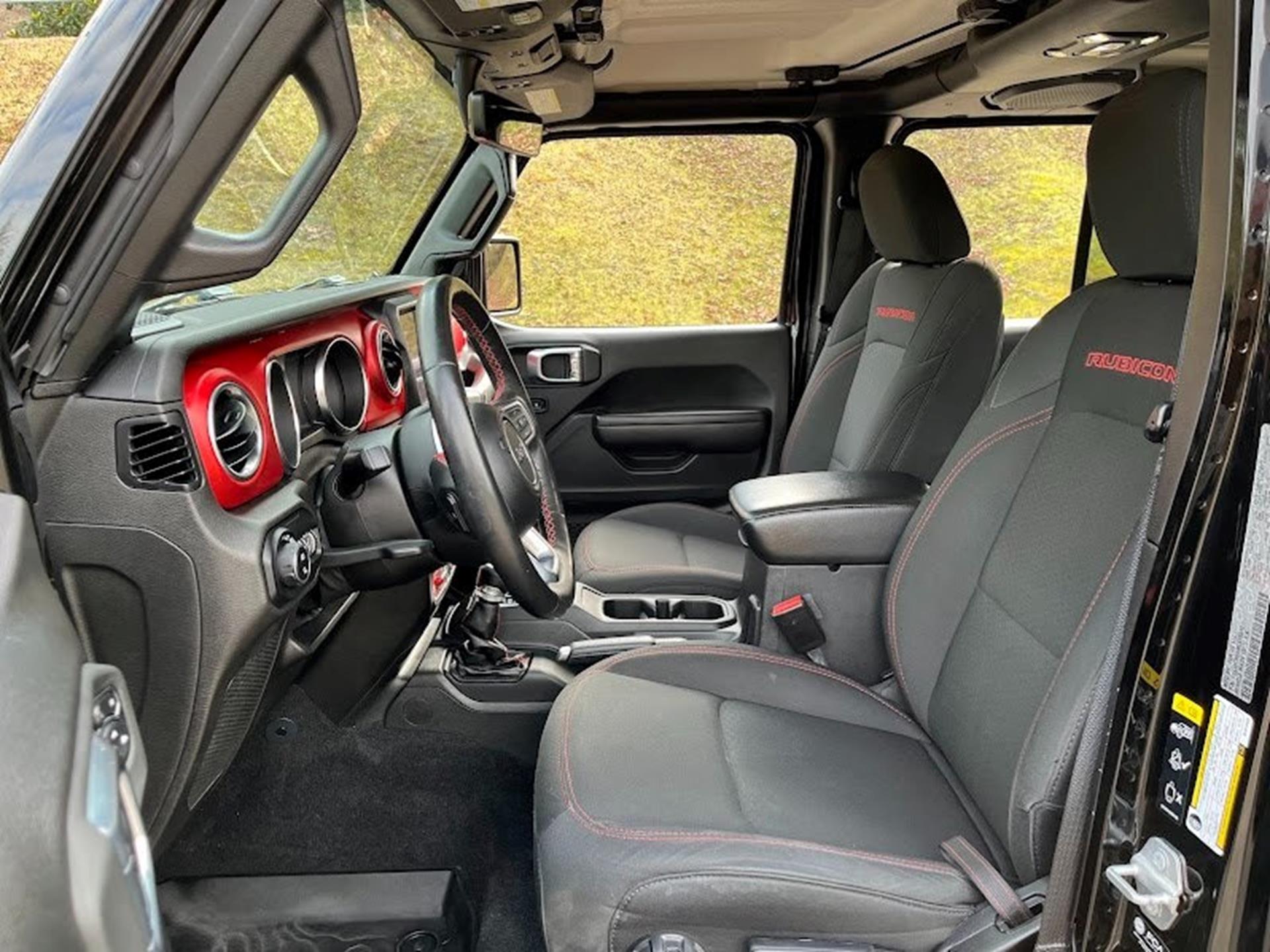 Clean CARFAX. CARFAX One-Owner. INFORMATION ABOUT THIS VEHICLE AND WHAT FEATURES IT IS EQUIPPED WITH:, ***NAVIGATION***, Fresh Oil Change, Backup Camera/ Rearview Camera, Bluetooth, Cruise Control, Collision Warning Alert System, Blind Spot Monitors, Heated Seats, Navigation System, Apple Carplay/ Android Auto, Touchscreen Controls, Keyless Access, Push Button Start, Automatic Headlights, Voice Recognition, Smartphone App Integration, Remote Start, Sirius XM Radio/ Satellite Radio, Parking Sensors, Tow Package, Multi-Zone Climate Control, Premium Audio, Alloy Wheels, Security System, Steering Wheel Controls, Trailer Hitch, Brake Assist, Homelink, Premium Sound System. 2021 Jeep Gladiator Rubicon 4WD Black Clearcoat 8-Speed Automatic 3.6L V6 24V VVT