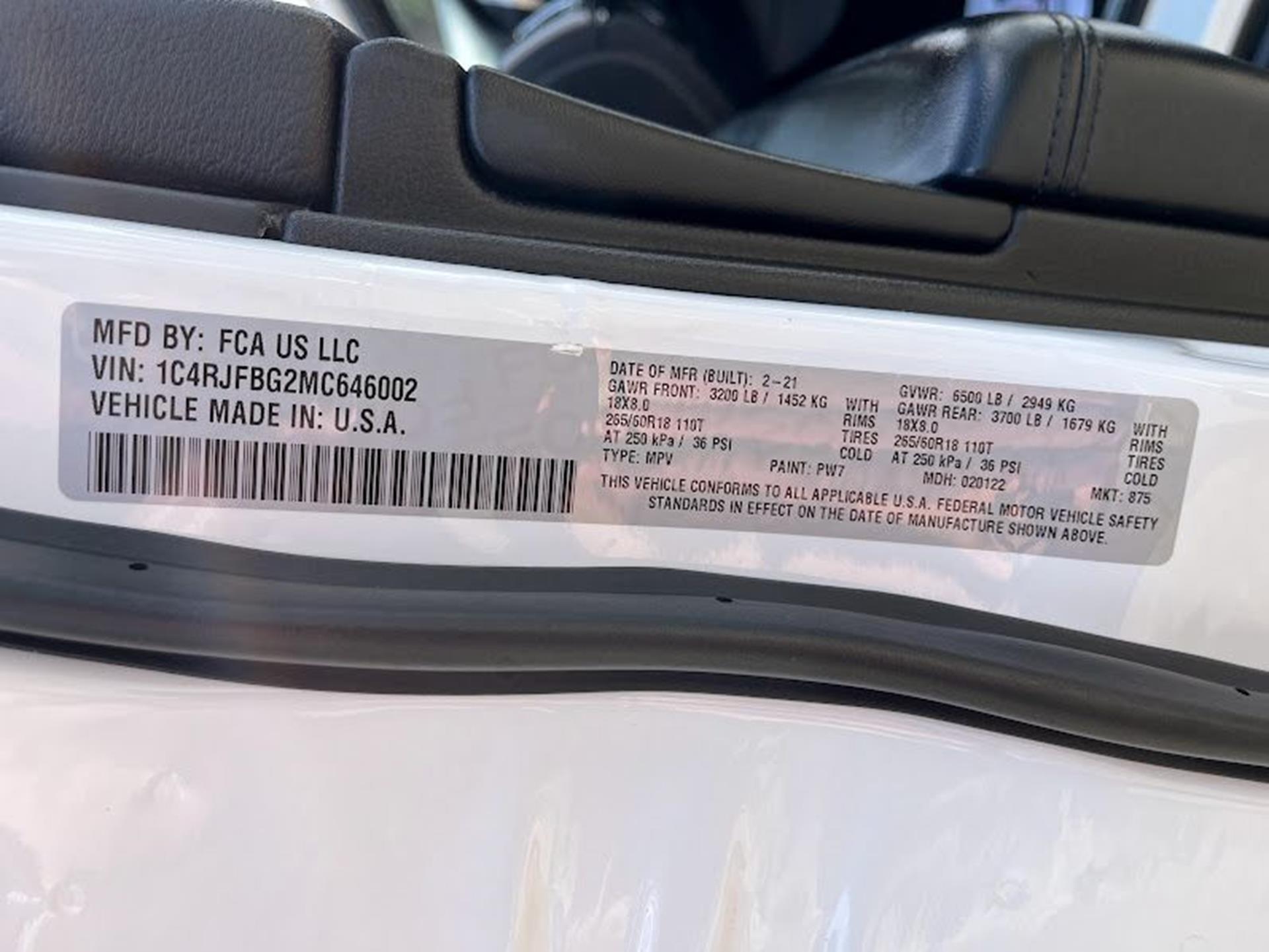 INFORMATION ABOUT THIS VEHICLE AND WHAT FEATURES IT IS EQUIPPED WITH:, ***NAVIGATION***, Fresh Oil Change, Backup Camera/ Rearview Camera, Bluetooth, Cruise Control, Collision Avoidance System, Blind Spot Monitors, Heated Seats, Heated Rear Seats, Cooled Seats/ Ventilated Seats, Navigation System, Apple Carplay/ Android Auto, Sunroof/ Moonroof, Panoramic Moonroof, Touchscreen Controls, Keyless Access, Push Button Start, Automatic Headlights, Voice Recognition, Smartphone App Integration, Wi-Fi Hotspot, Aux Input, Remote Start, Leather Seats, Bench Seat, Sirius XM Radio/ Satellite Radio, Parking Sensors, Rain Sensing Windshield Wipers, Memory Seat, Power Seats, Multi-Zone Climate Control, Alloy Wheels, Security System, Steering Wheel Controls, Brake Assist, Homelink, 4WD. 2021 Jeep Grand Cherokee Limited 4WD Bright White Clearcoat 8-Speed Automatic 3.6L V6 24V VVT